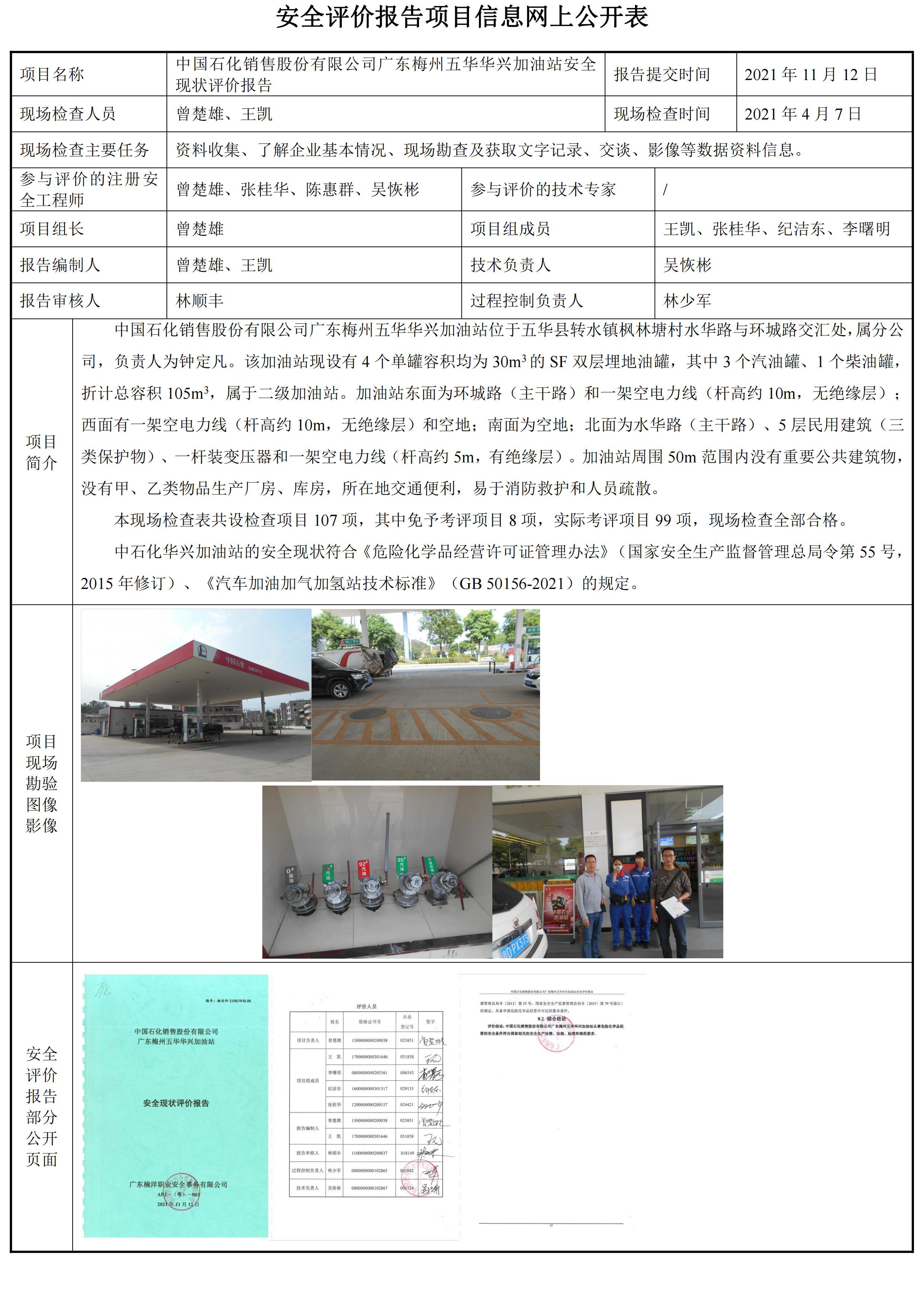 中国石化销售股份有限公司广东梅州五华华兴加油站安全现状评价