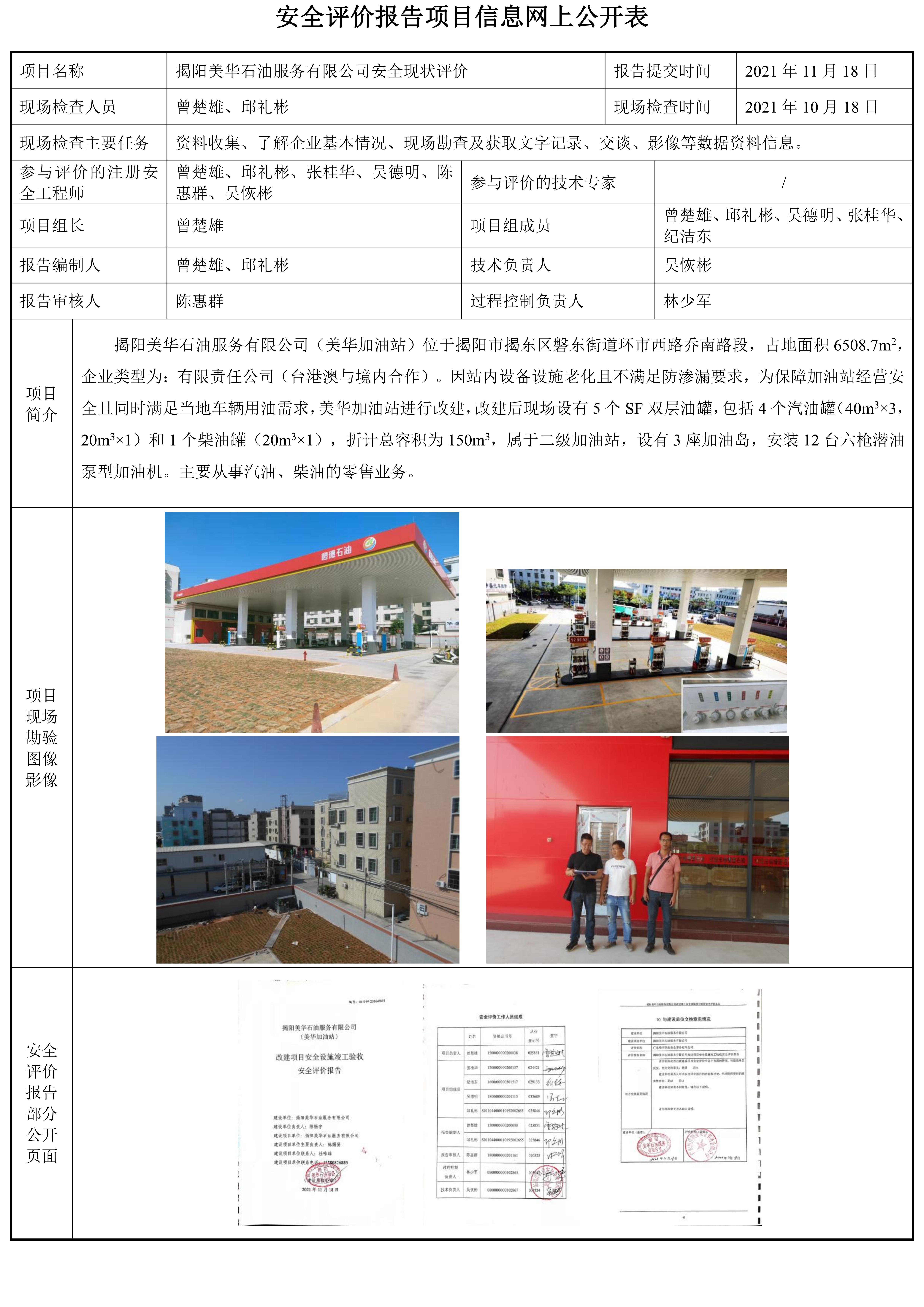 揭阳美华石油服务有限公司(美华加油站)改建项目安全设施竣工验收安全评价