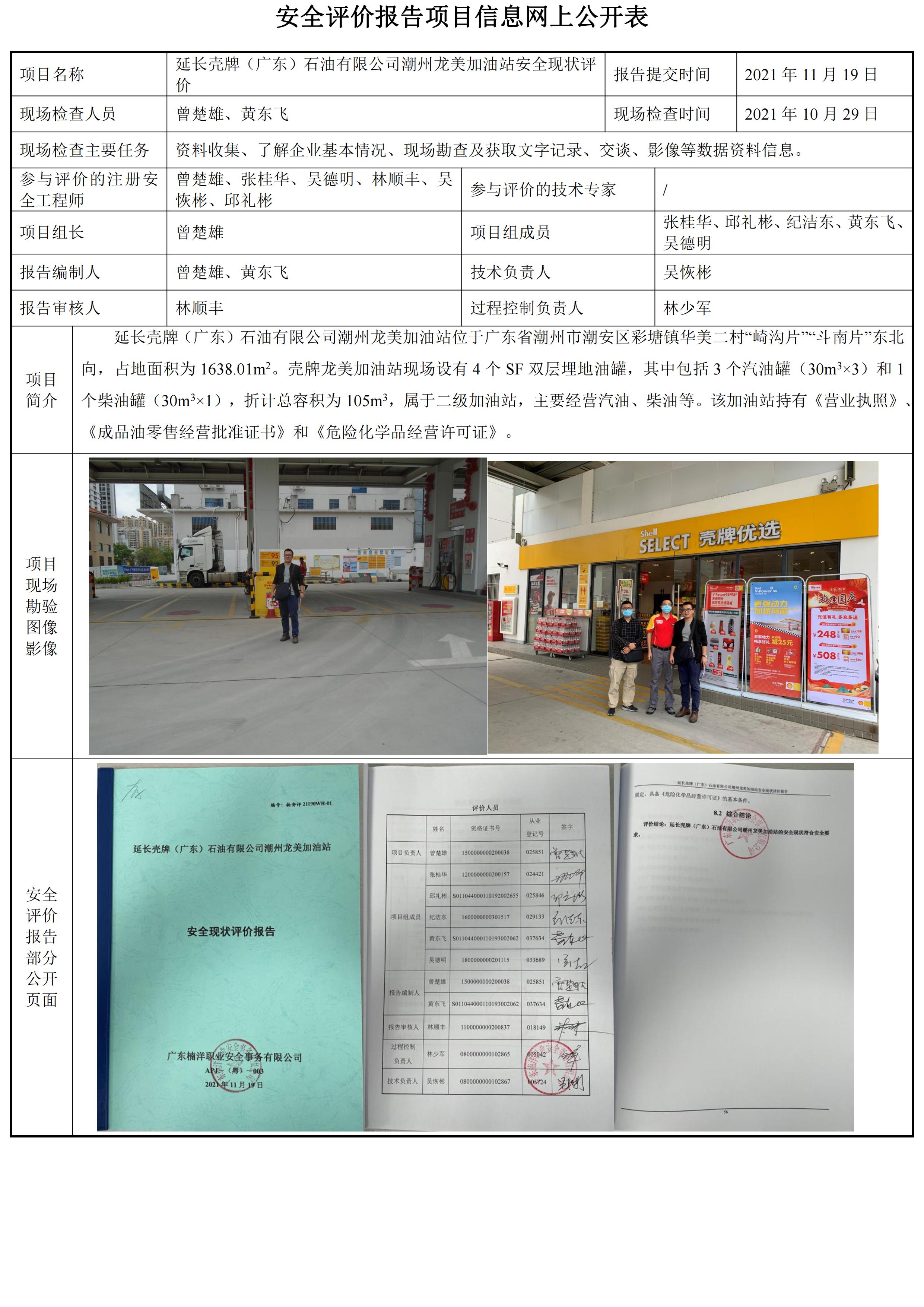 延长壳牌(广东)石油有限公司潮州龙美加油站安全现状评价