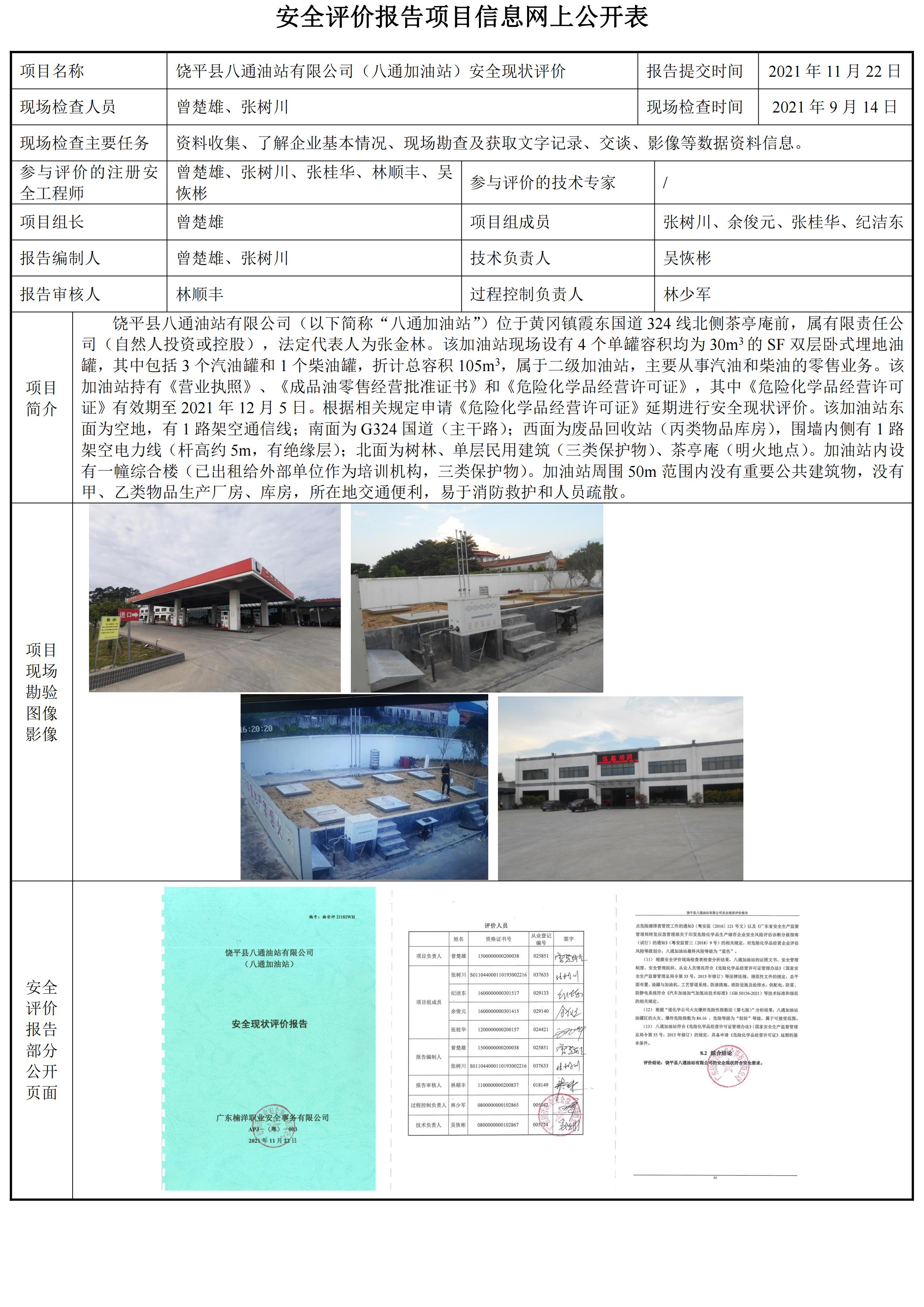 饶平县八通油站有限公司(八通加油站)安全现状评价
