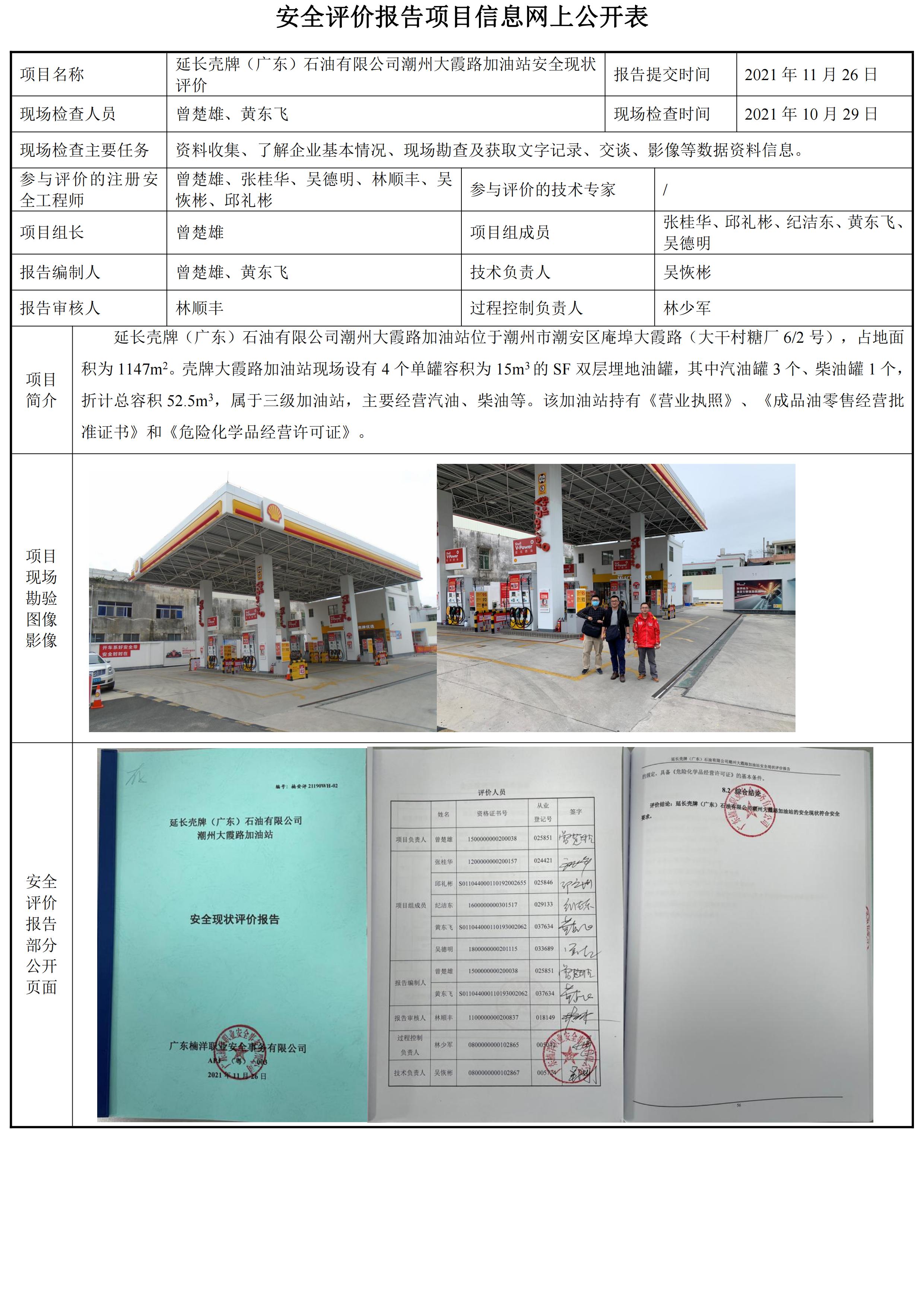 延长壳牌(广东)石油有限公司潮州大霞路加油站安全现状评价