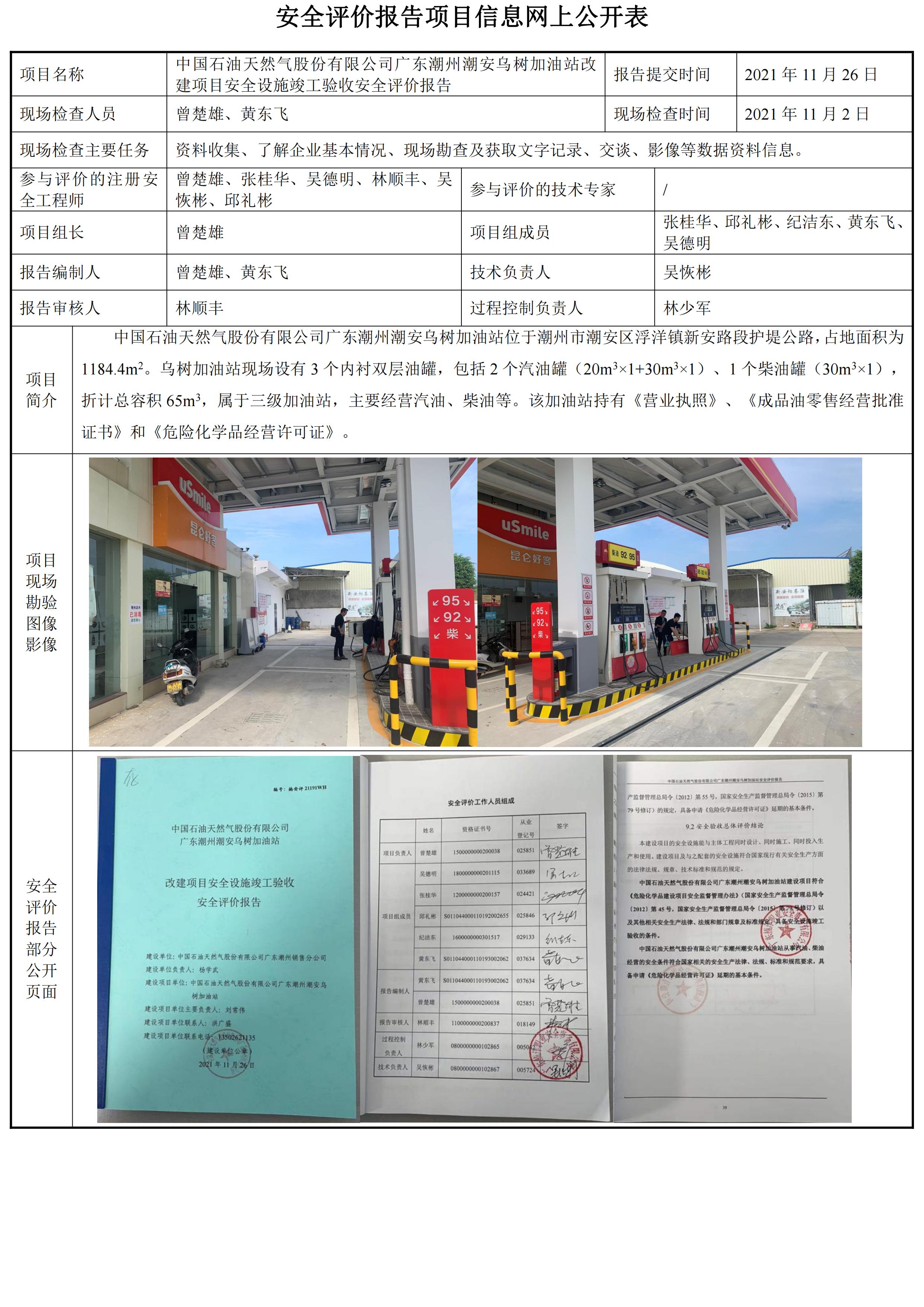 中国石油天然气股份有限公司广东潮州潮安乌树加油站改建项目安全设施竣工验收安全评价