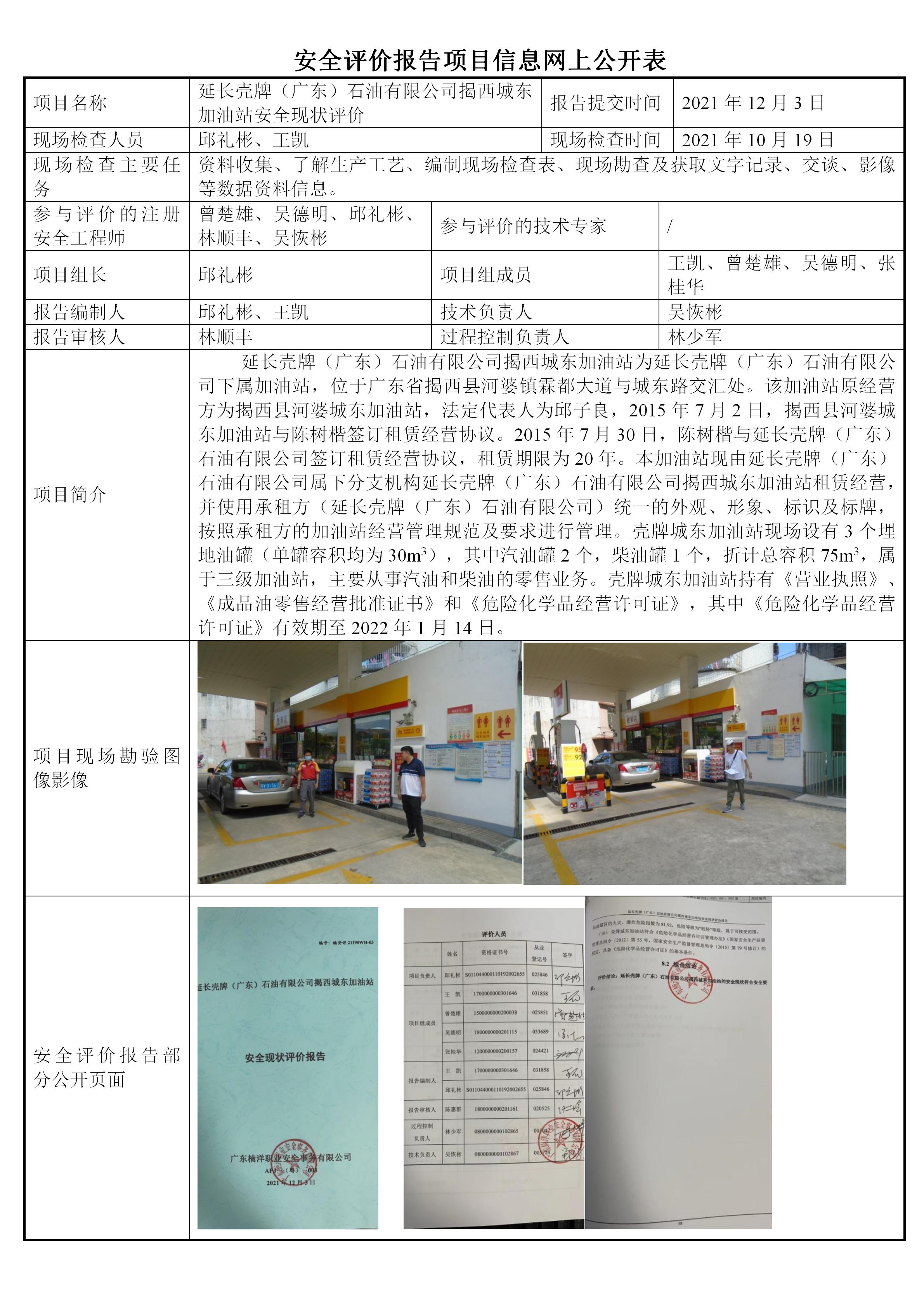 延长壳牌(广东)石油有限公司揭西城东加油站安全现状评价