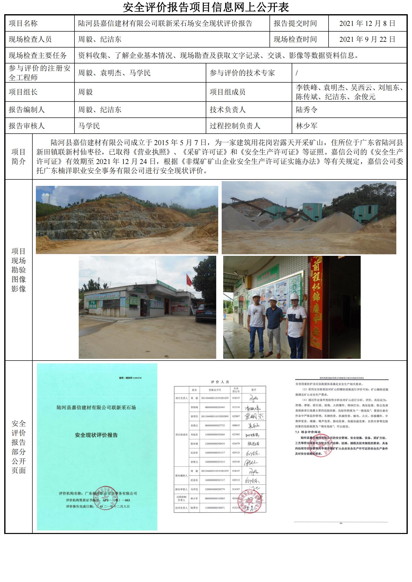 陆河县嘉信建材有限公司联新采石场安全现状评价