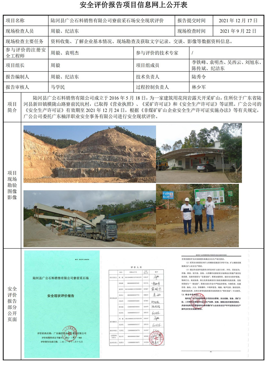 陆河县广公石料销售有限公司寮前采石场安全现状评价
