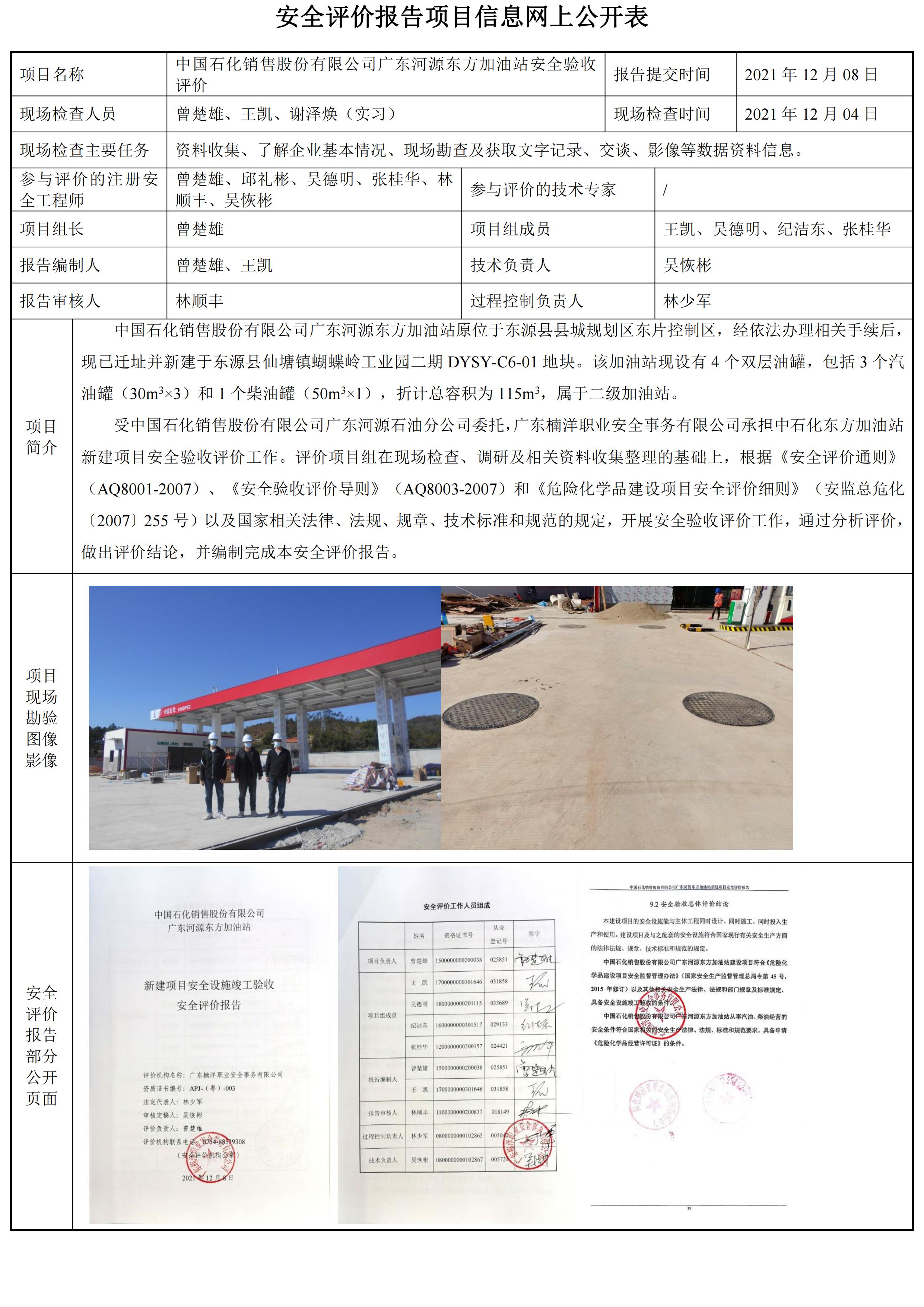 中国石化销售股份有限公司广东河源东方加油站新建项目安全设施竣工验收安全评价
