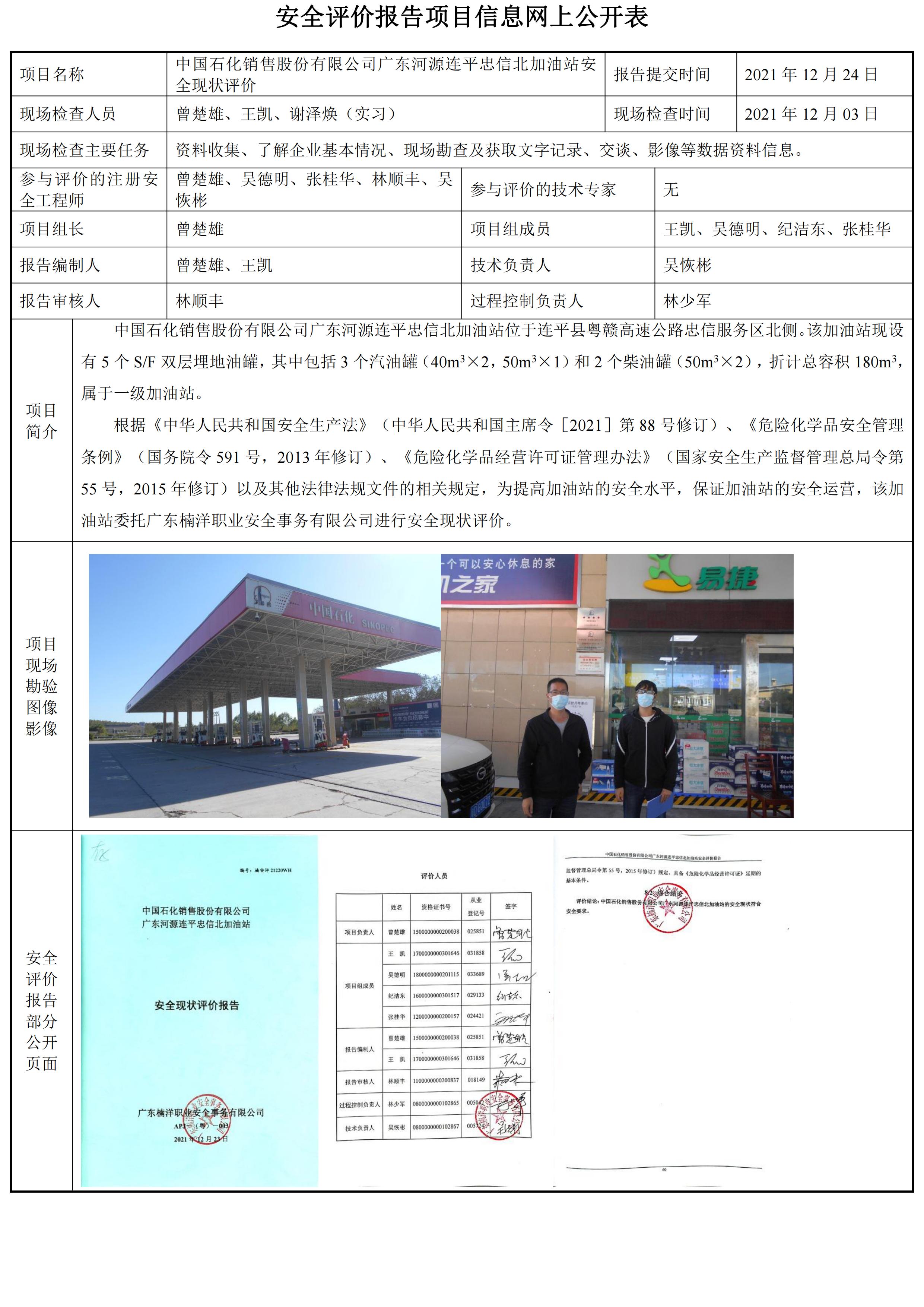 中国石化销售股份有限公司广东河源连平忠信北加油站安全现状评价报告
