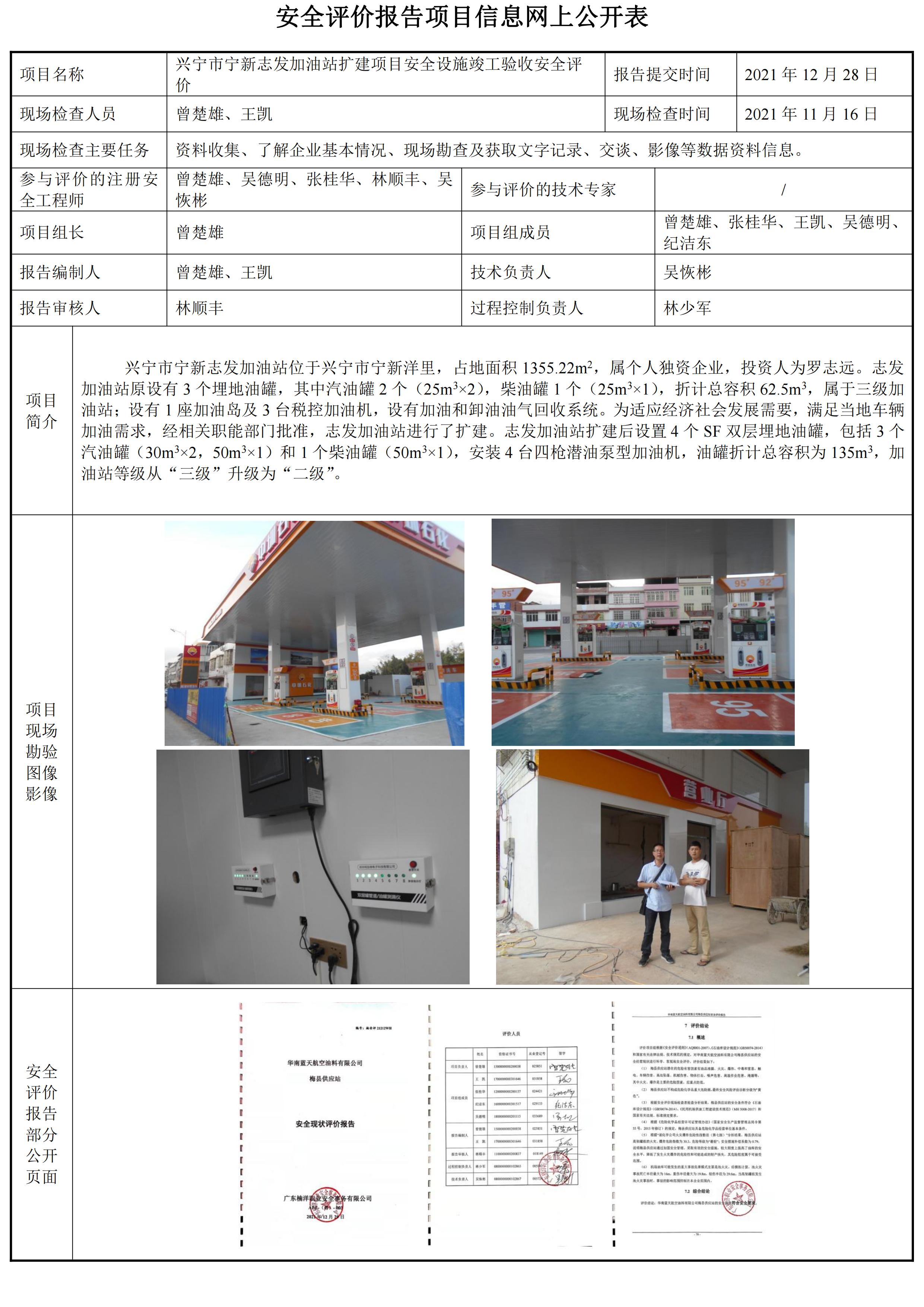 兴宁市宁新志发加油站扩建项目安全设施竣工验收安全评价