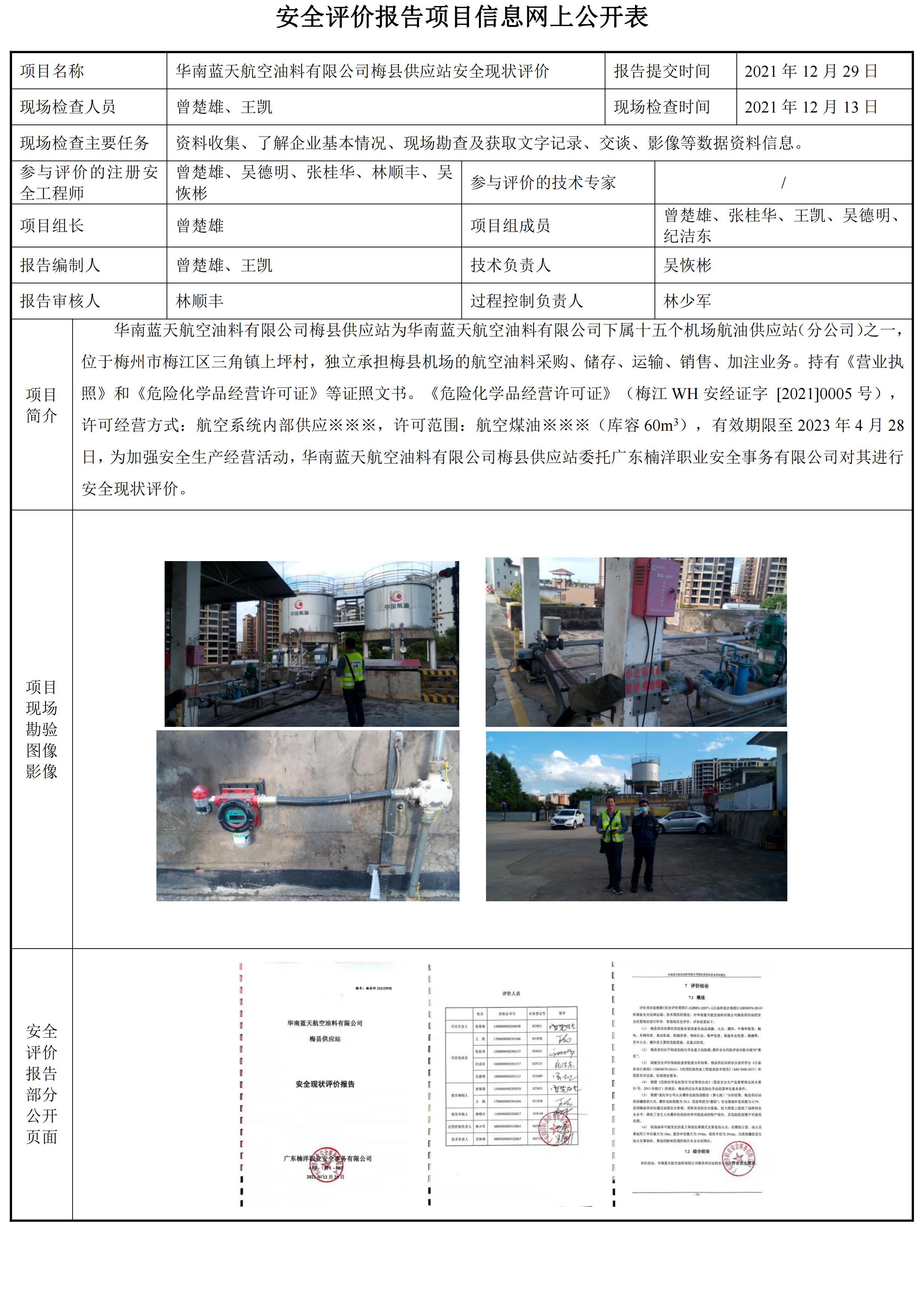 华南蓝天航空油料有限公司梅县供应站安全现状评价