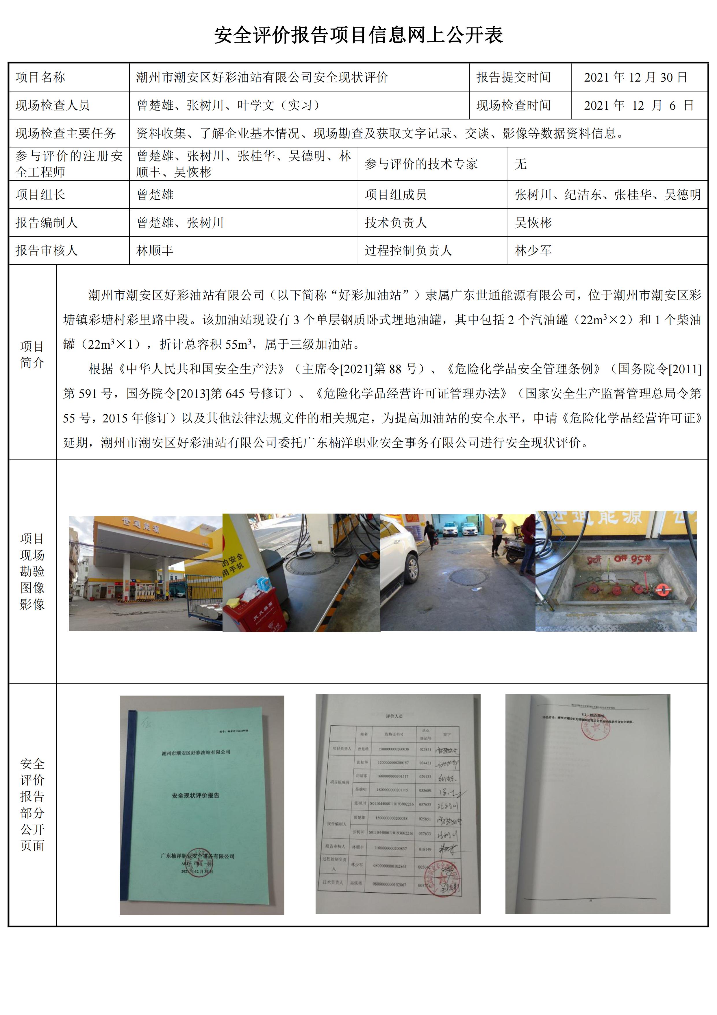潮州市潮安区好彩油站有限公司安全现状评价报告