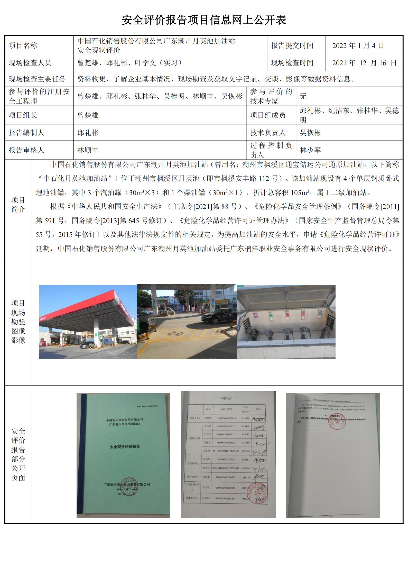 中国石化销售股份有限公司广东潮州月英池加油站安全现状评价报告