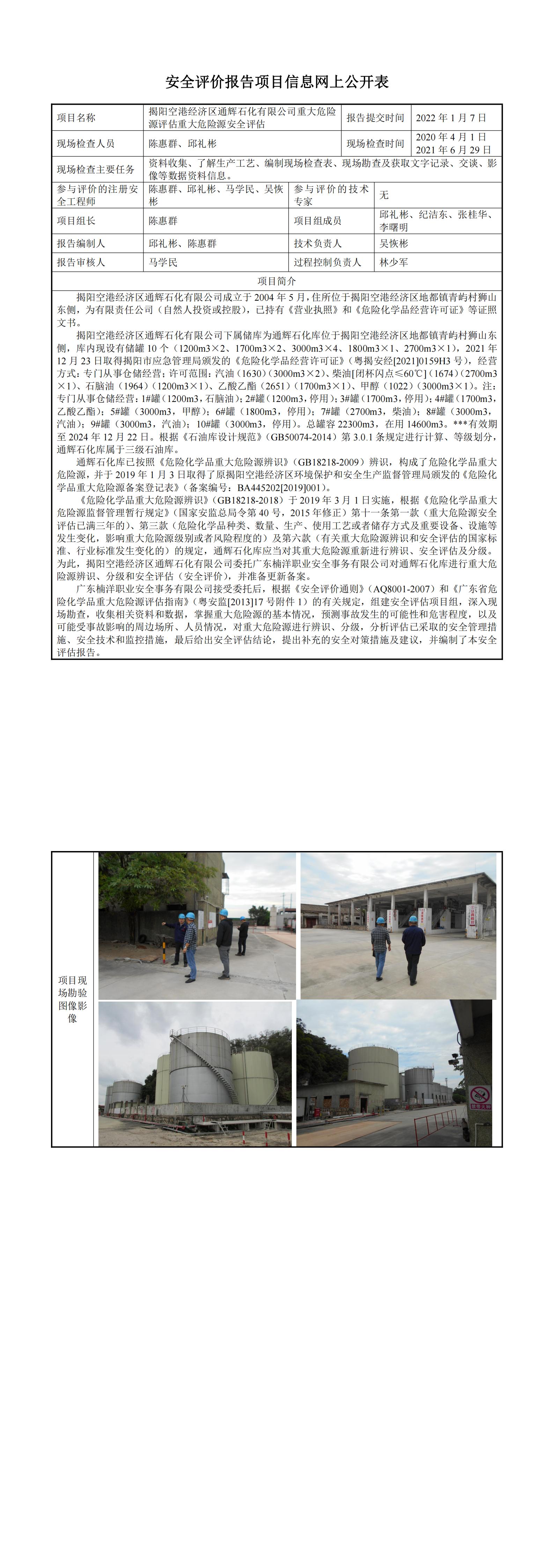 揭阳空港经济区通辉石化有限公司重大危险源安全评估报告