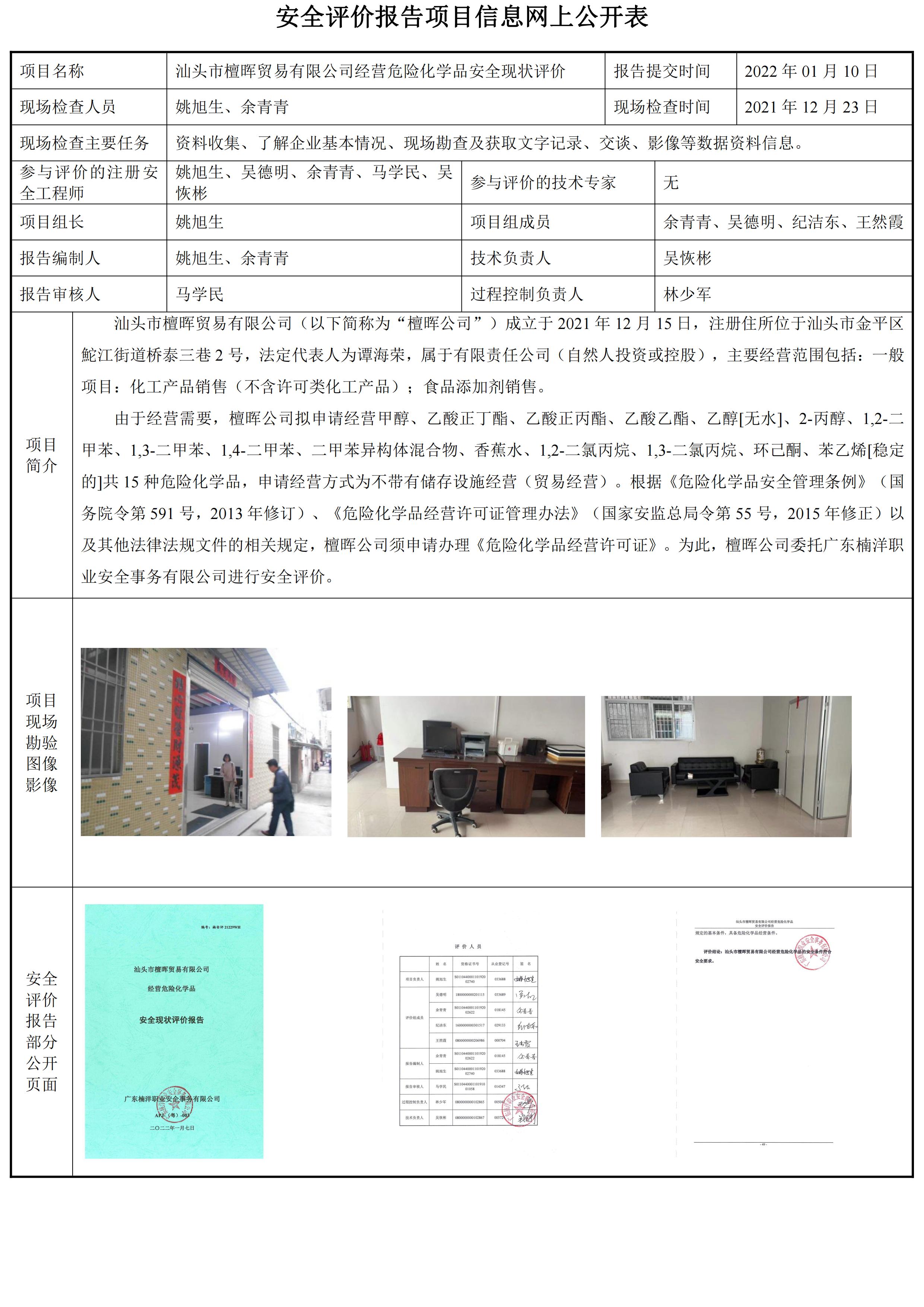 汕头市檀晖贸易有限公司经营危险化学品安全现状评价报告