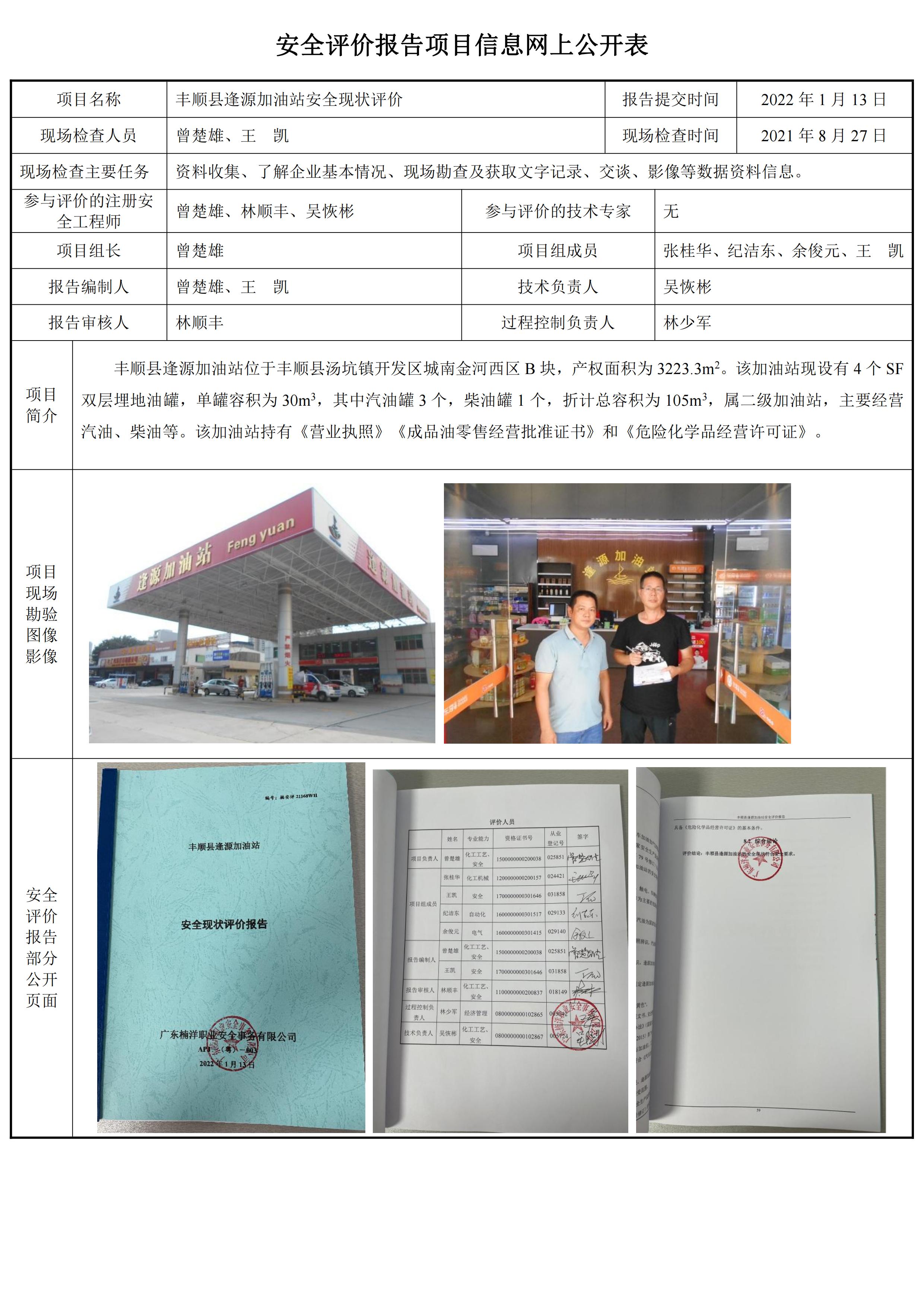 丰顺县逢源加油站安全现状评价