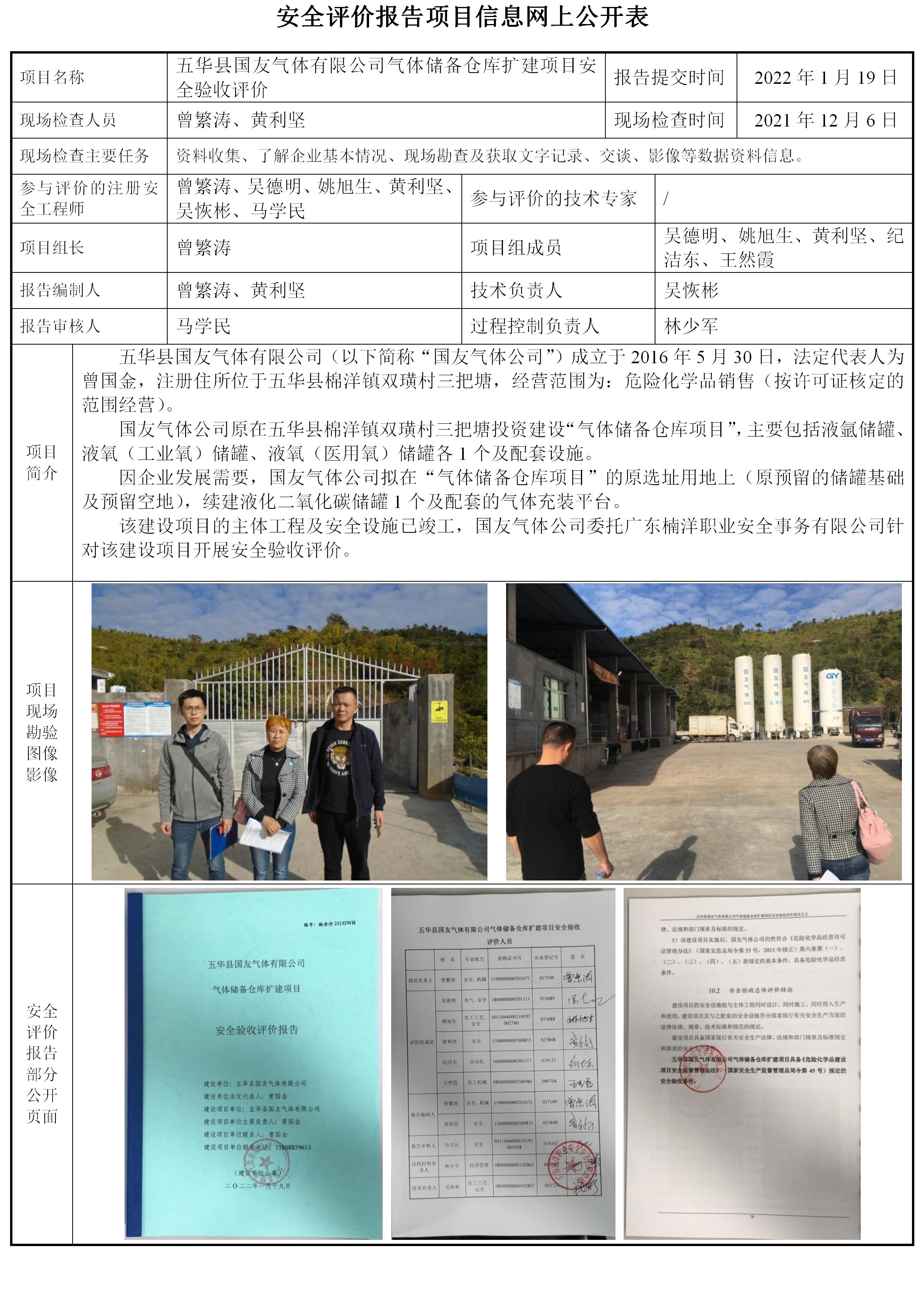 五华县国友气体有限公司气体储备仓库扩建项目安全验收评价