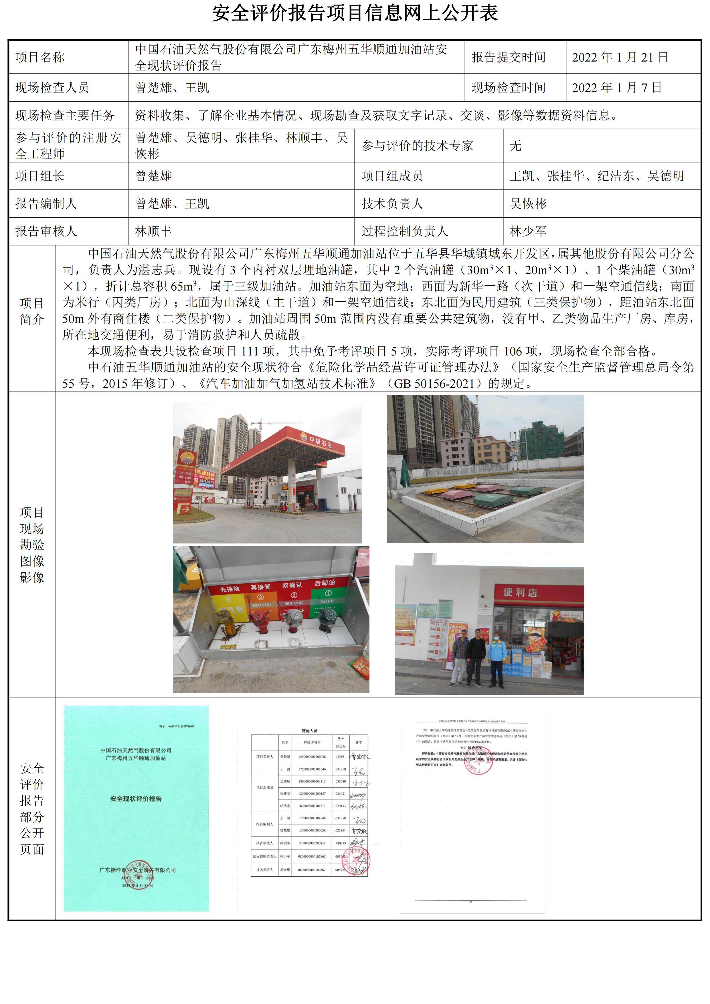 中国石油天然气股份有限公司广东梅州五华顺通加油站安全现状评价报告