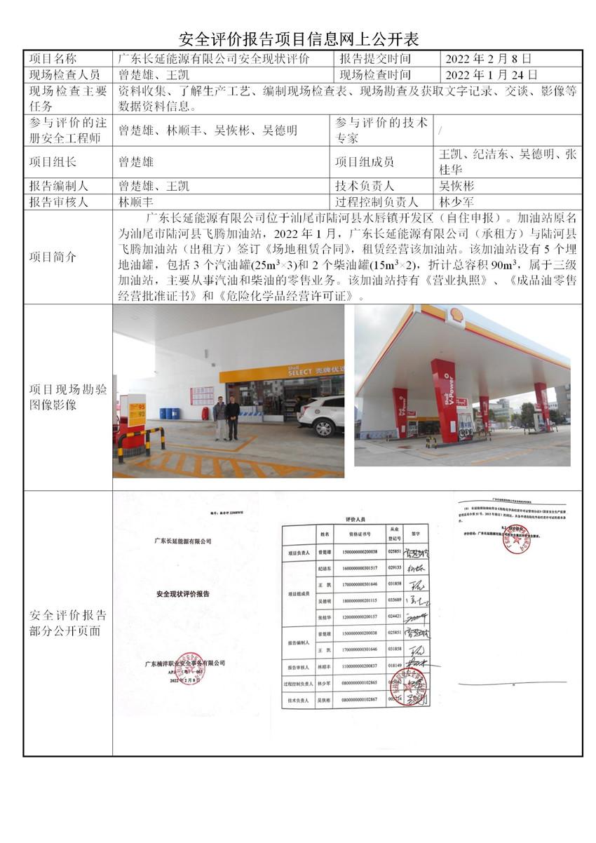 广东长延能源有限公司安全现状评价