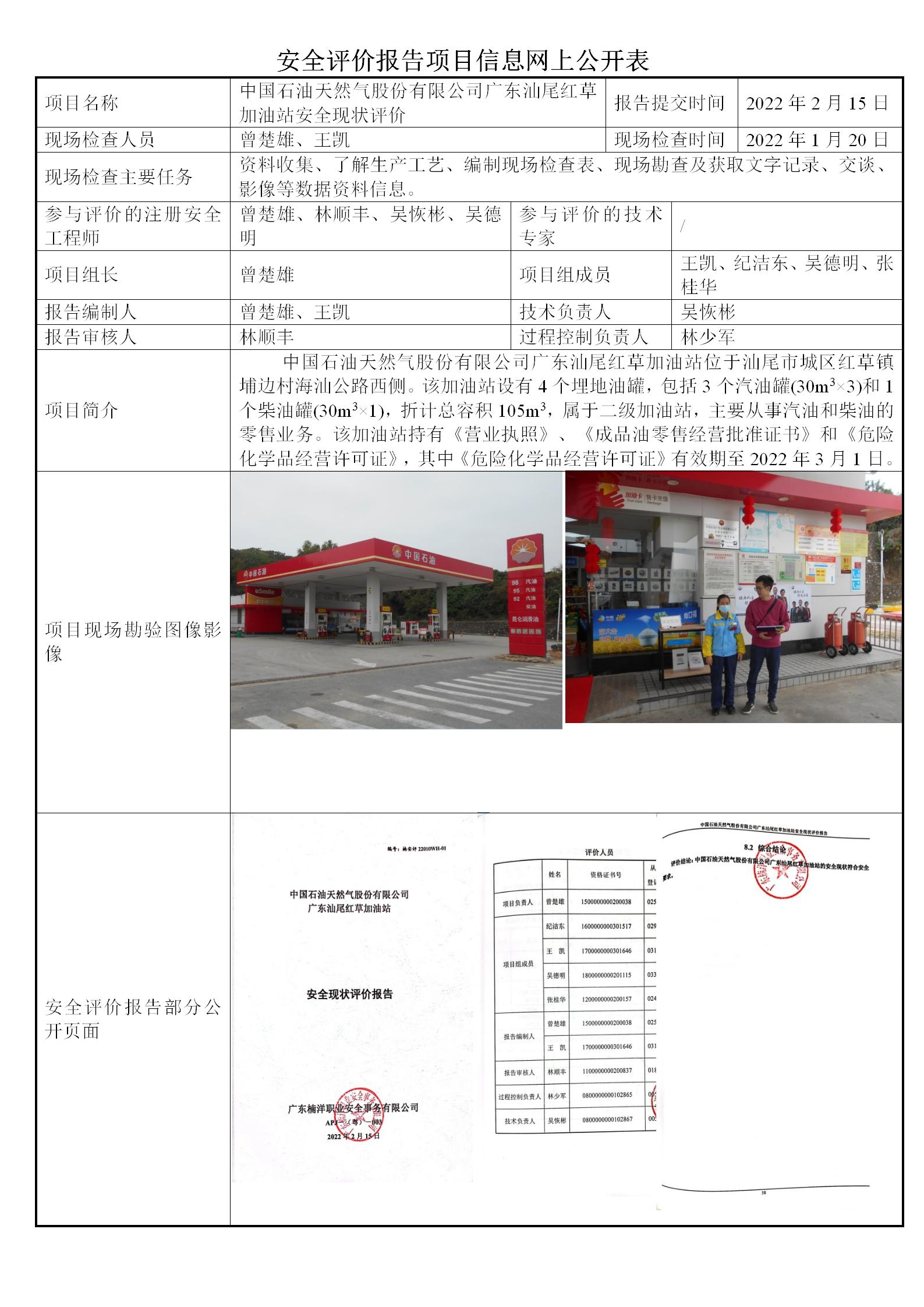 中国石油天然气股份有限公司广东汕尾红草加油站安全现状评价