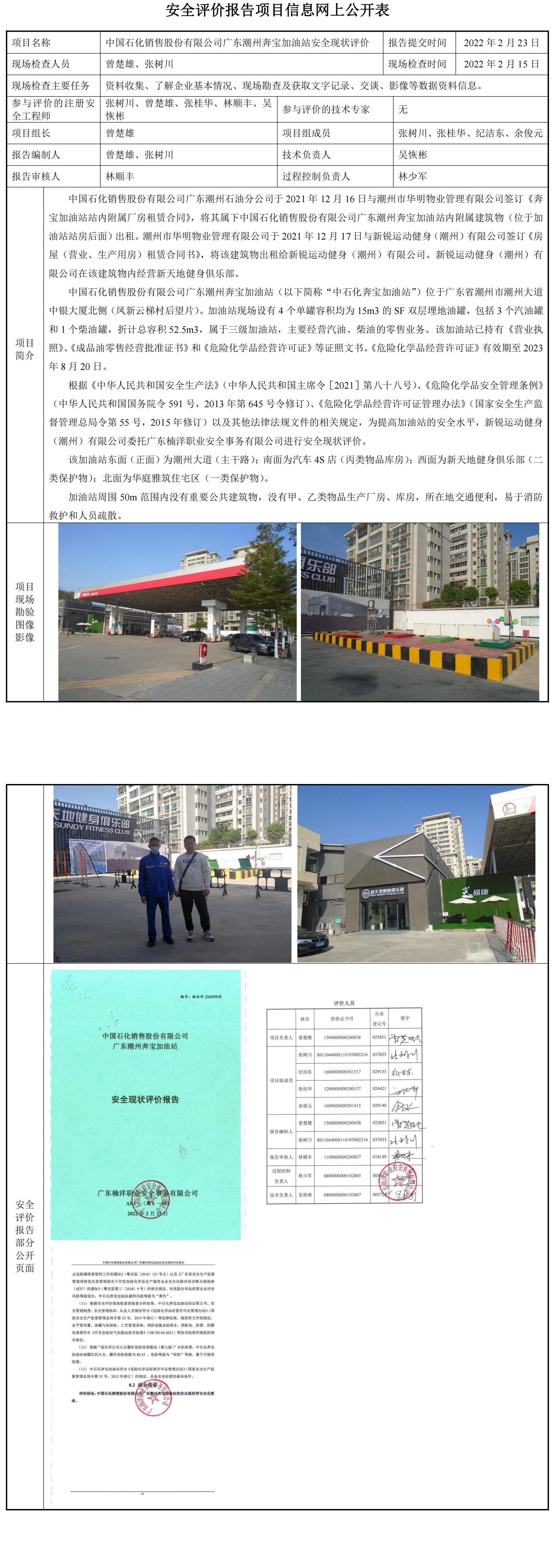 中国石化销售股份有限公司广东潮州奔宝加油站安全现状评价报告