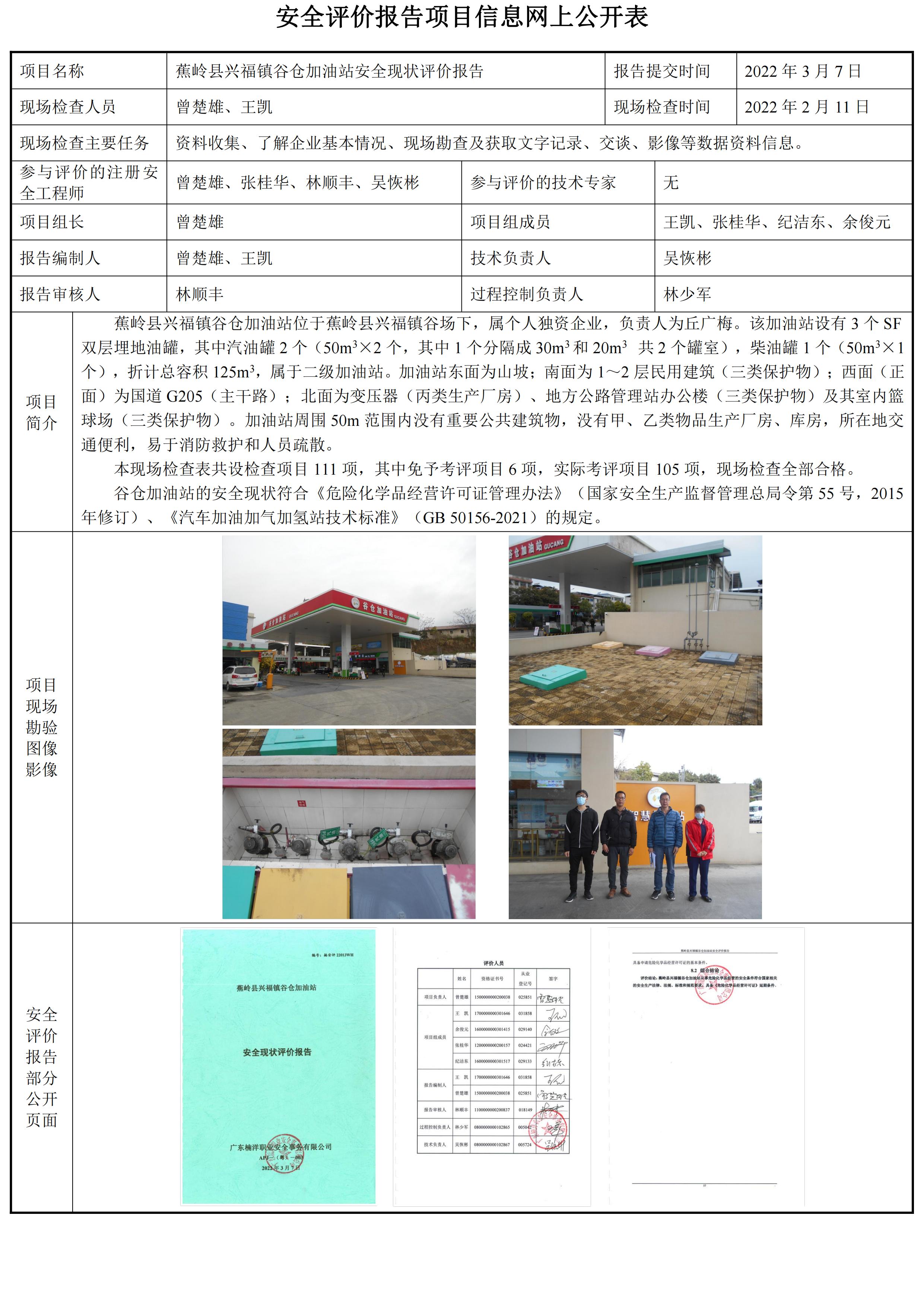 蕉岭县兴福镇谷仓加油站安全现状评价报告
