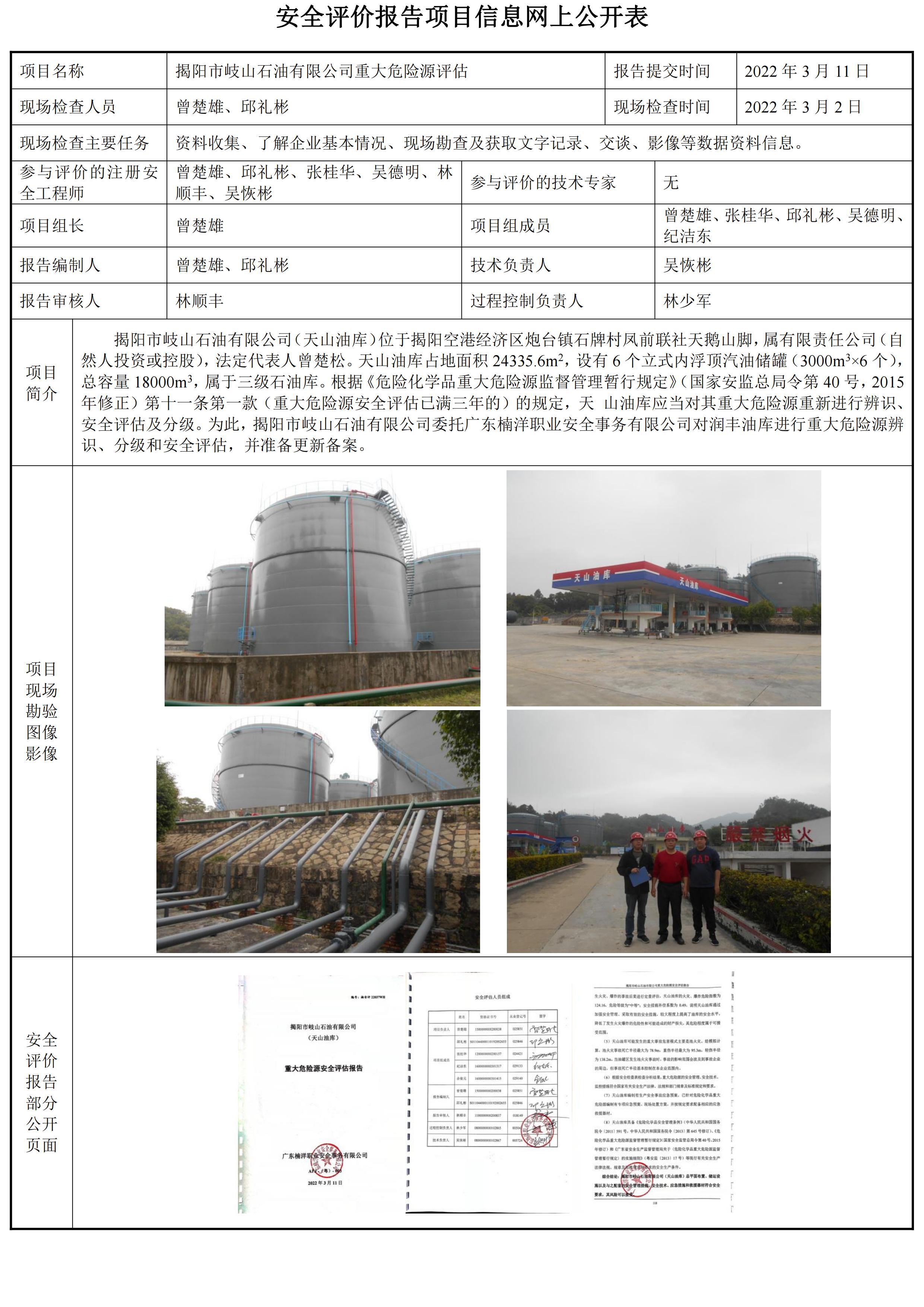 揭阳市岐山石油有限公司(天山油库)重大危险源安全评估报告