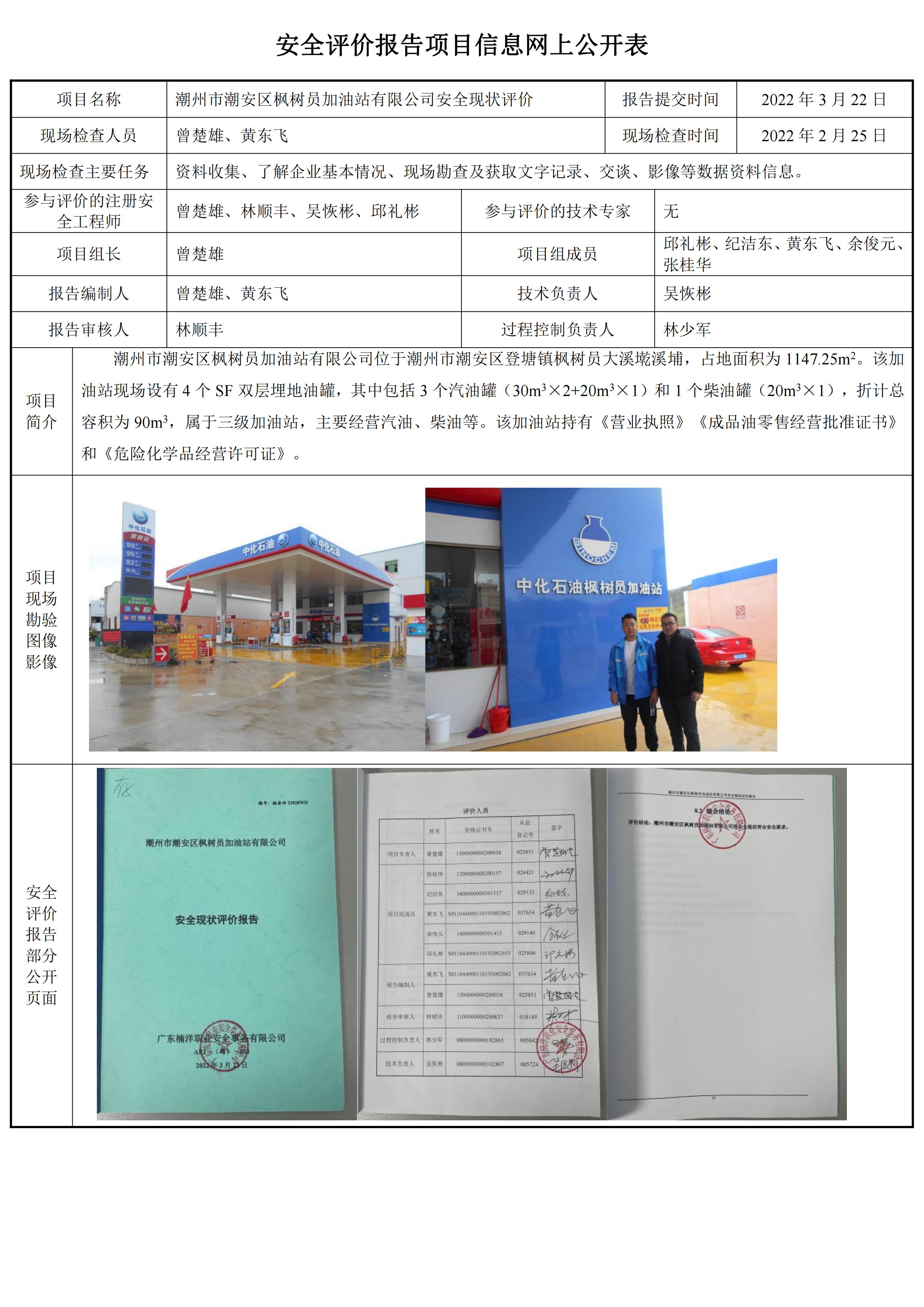 潮州市潮安区枫树员加油站有限公司安全现状评价报告