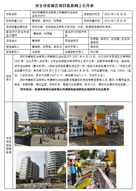 深圳市志众石油化工有限公司汕尾恒嘉加油站安全现状评价报告