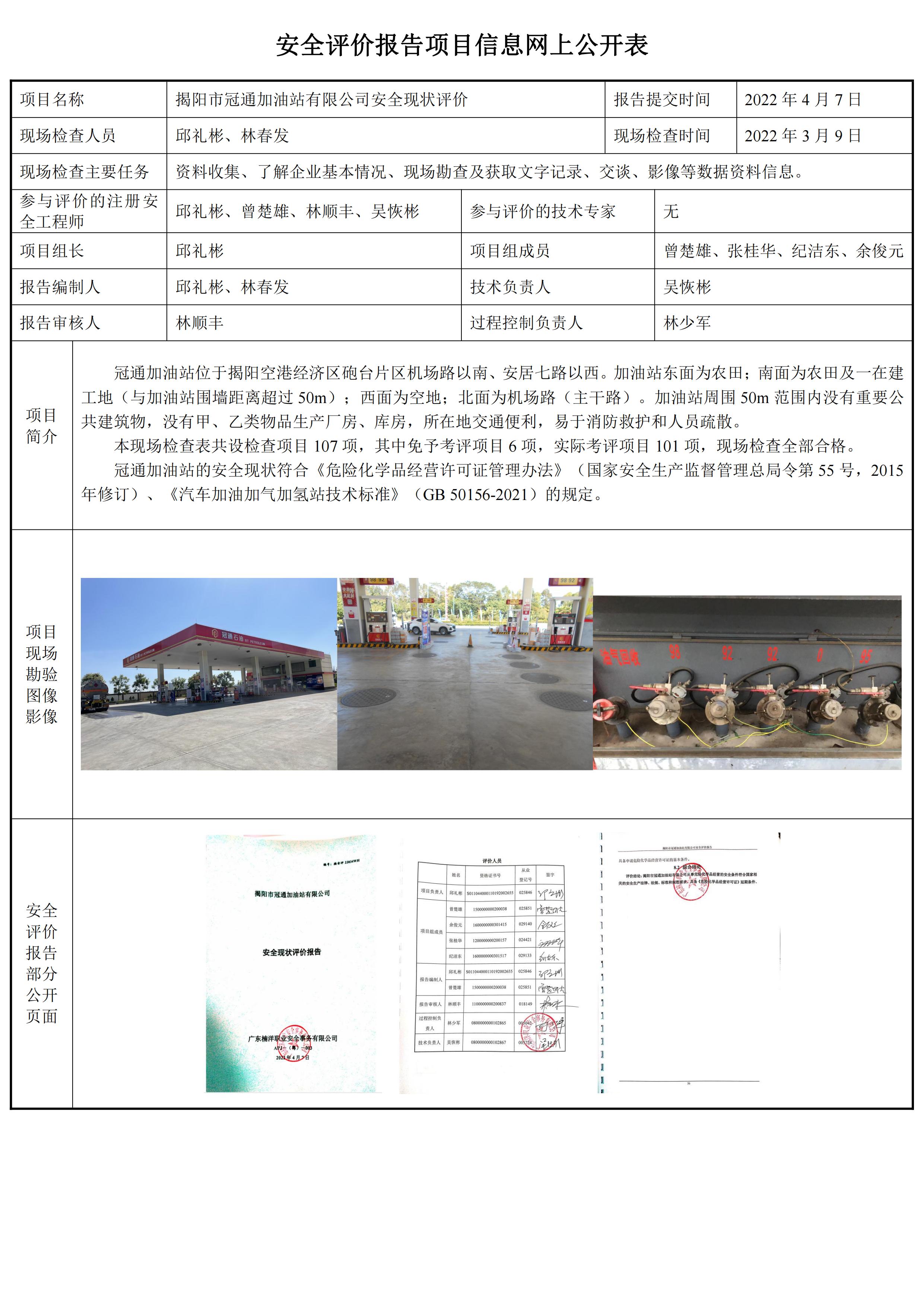揭阳市冠通加油站有限公司安全现状评价报告