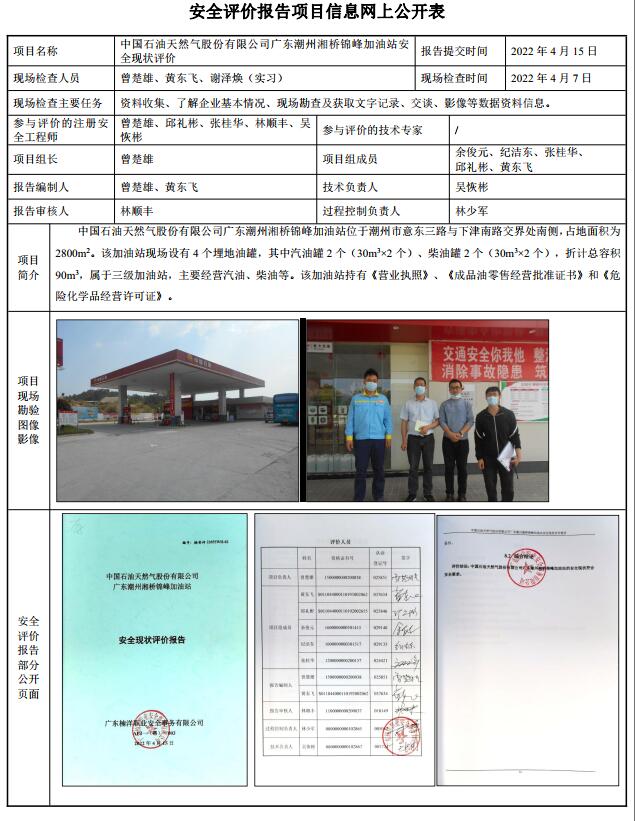 中国石油天然气股份有限公司广东潮州湘桥锦峰加油站安全现状评价报告