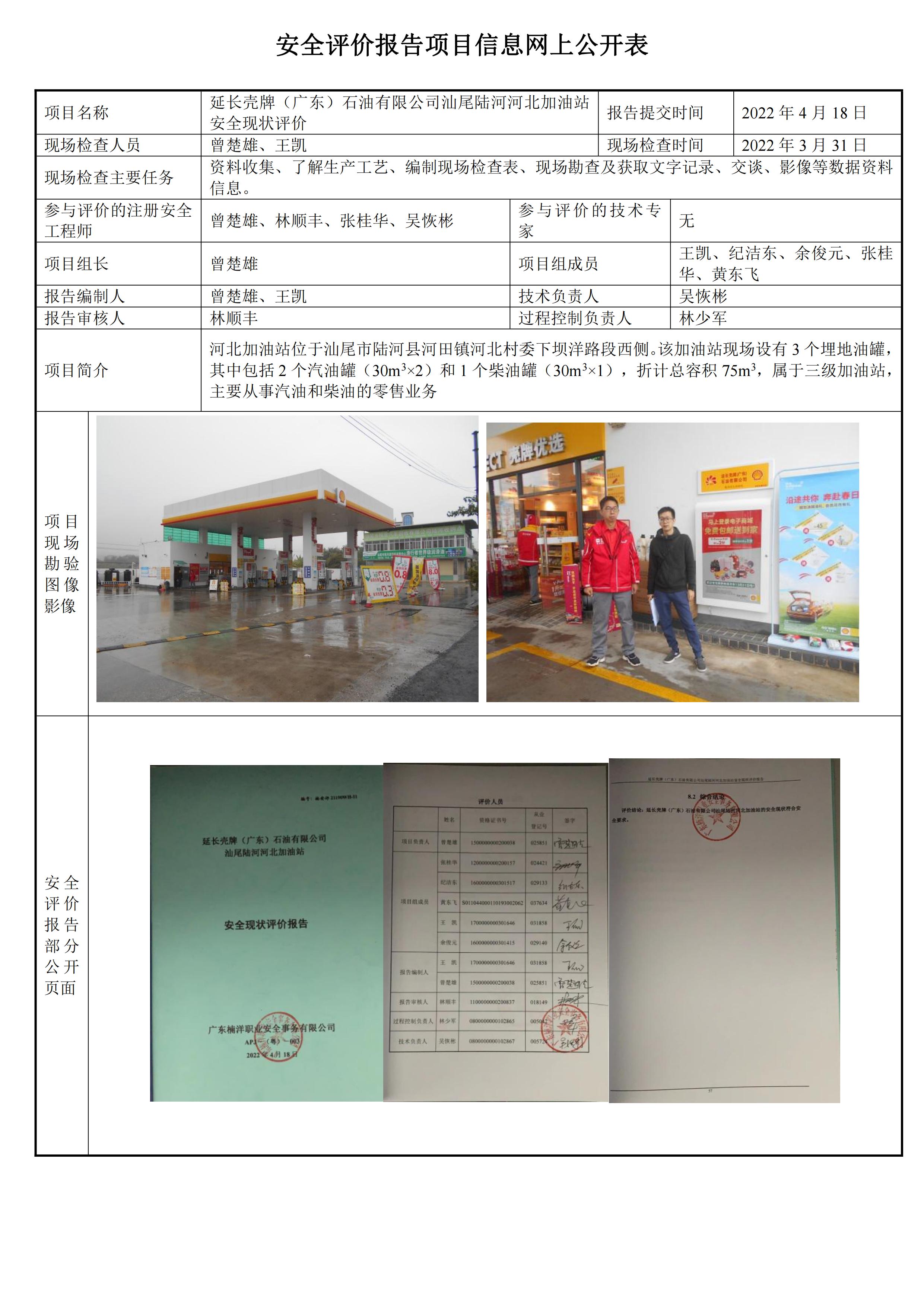 延长壳牌(广东)石油有限公司汕尾陆河河北加油站安全现状评价报告