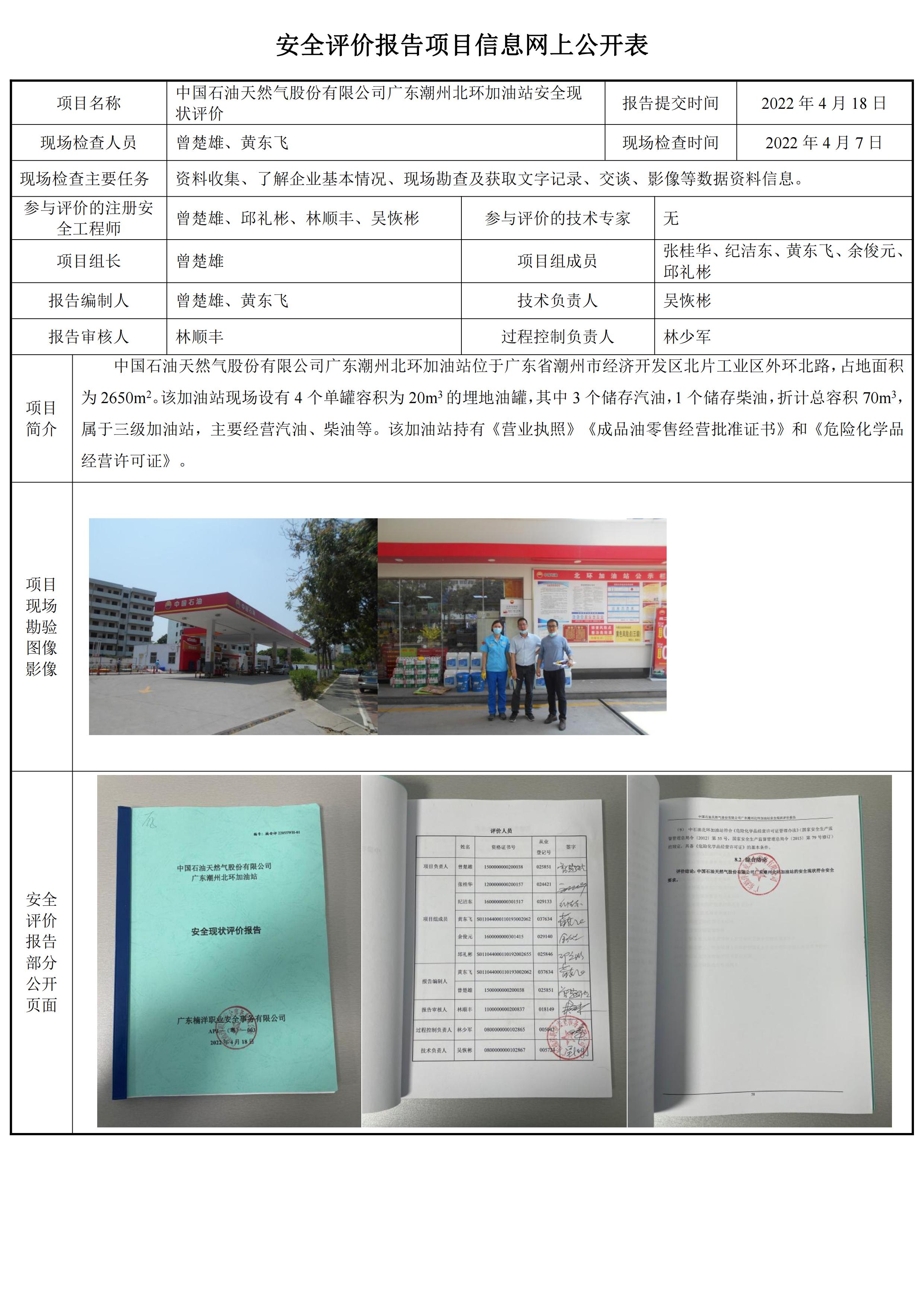 中国石油天然气股份有限公司广东潮州北环加油站安全现状评价报告