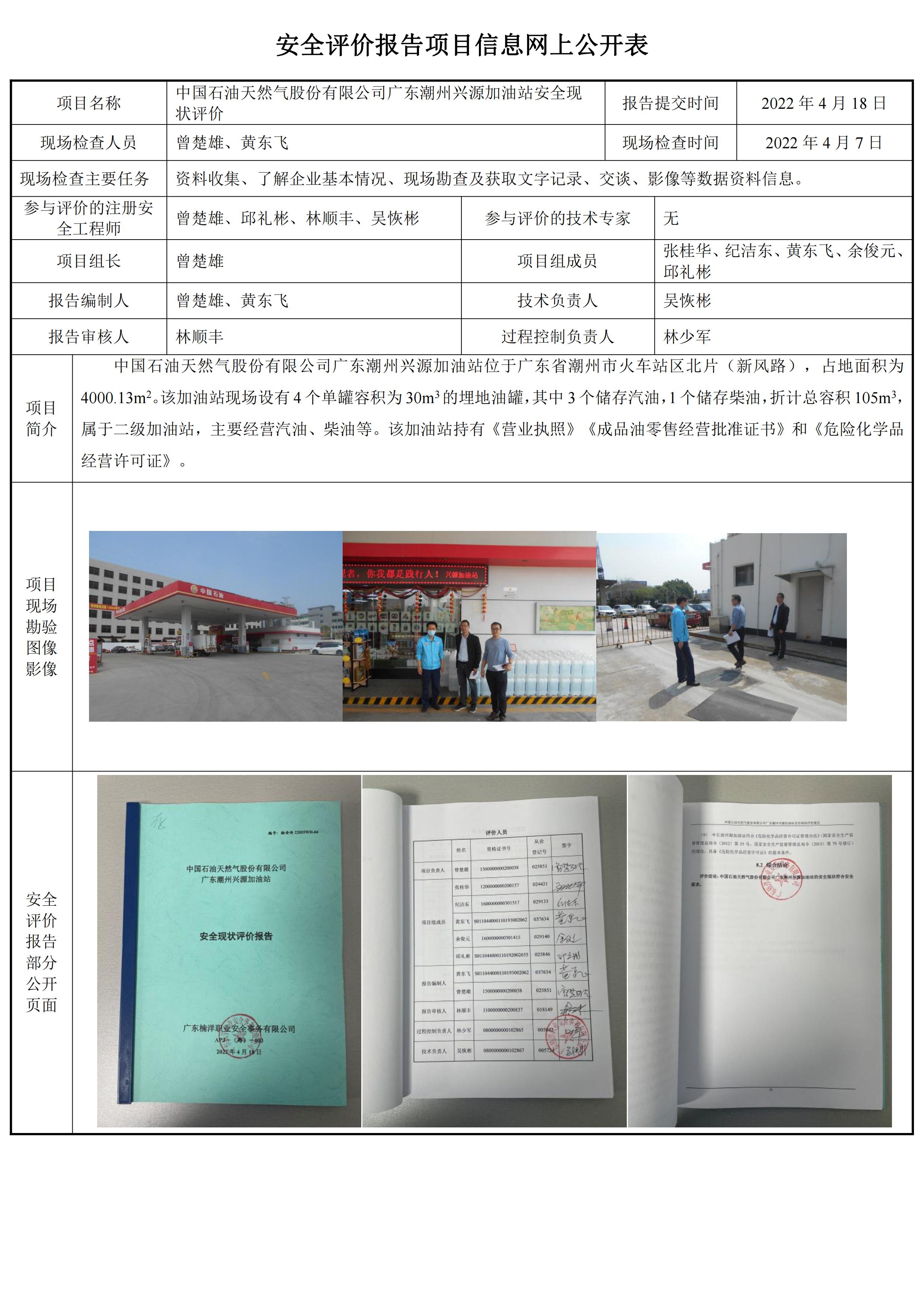 中国石油天然气股份有限公司广东潮州兴源加油站安全现状评价报告