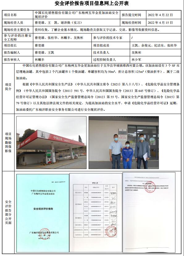 中国石化销售股份有限公司广东梅州五华金星加油站安全现状评价报告