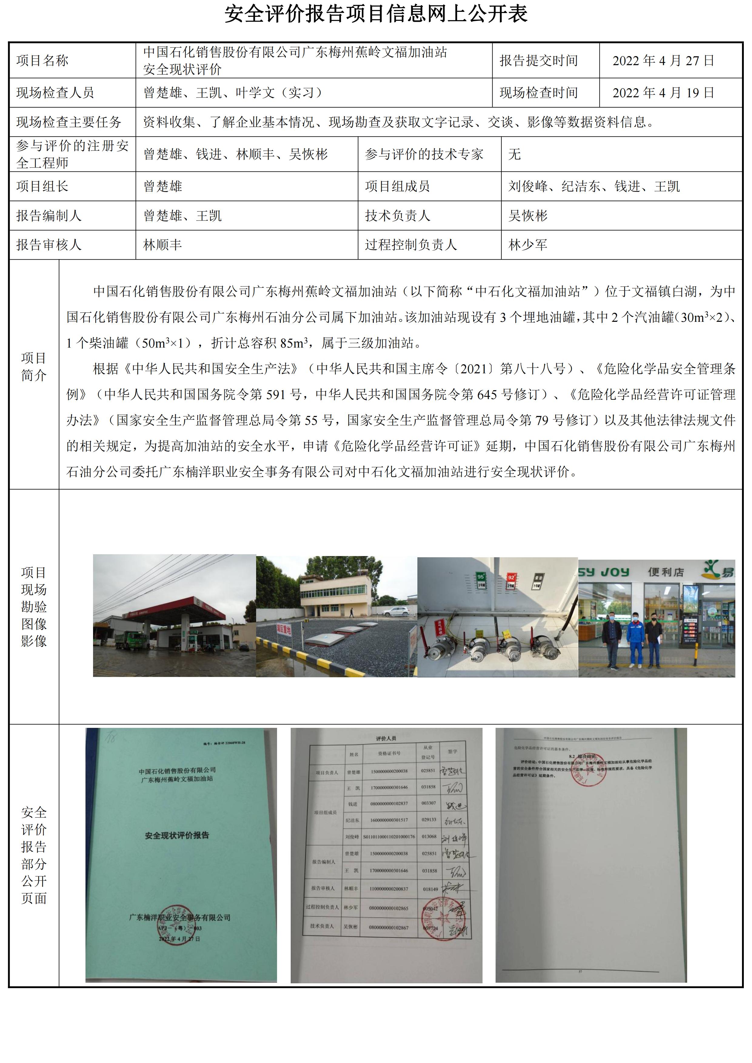 中国石化销售股份有限公司广东梅州蕉岭文福加油站安全现状评价报告