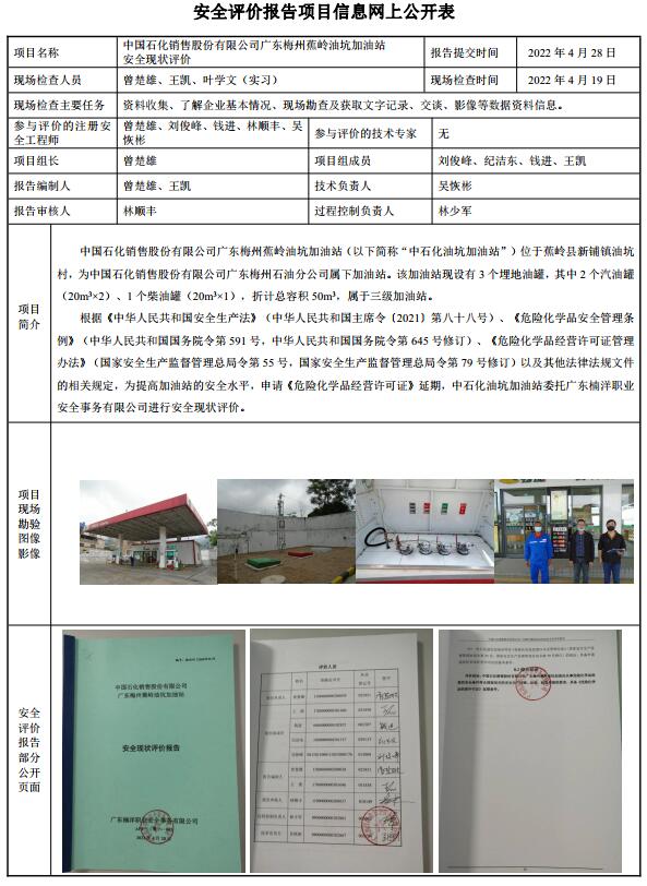 中国石化销售股份有限公司广东梅州蕉岭油坑加油站安全现状评价报告