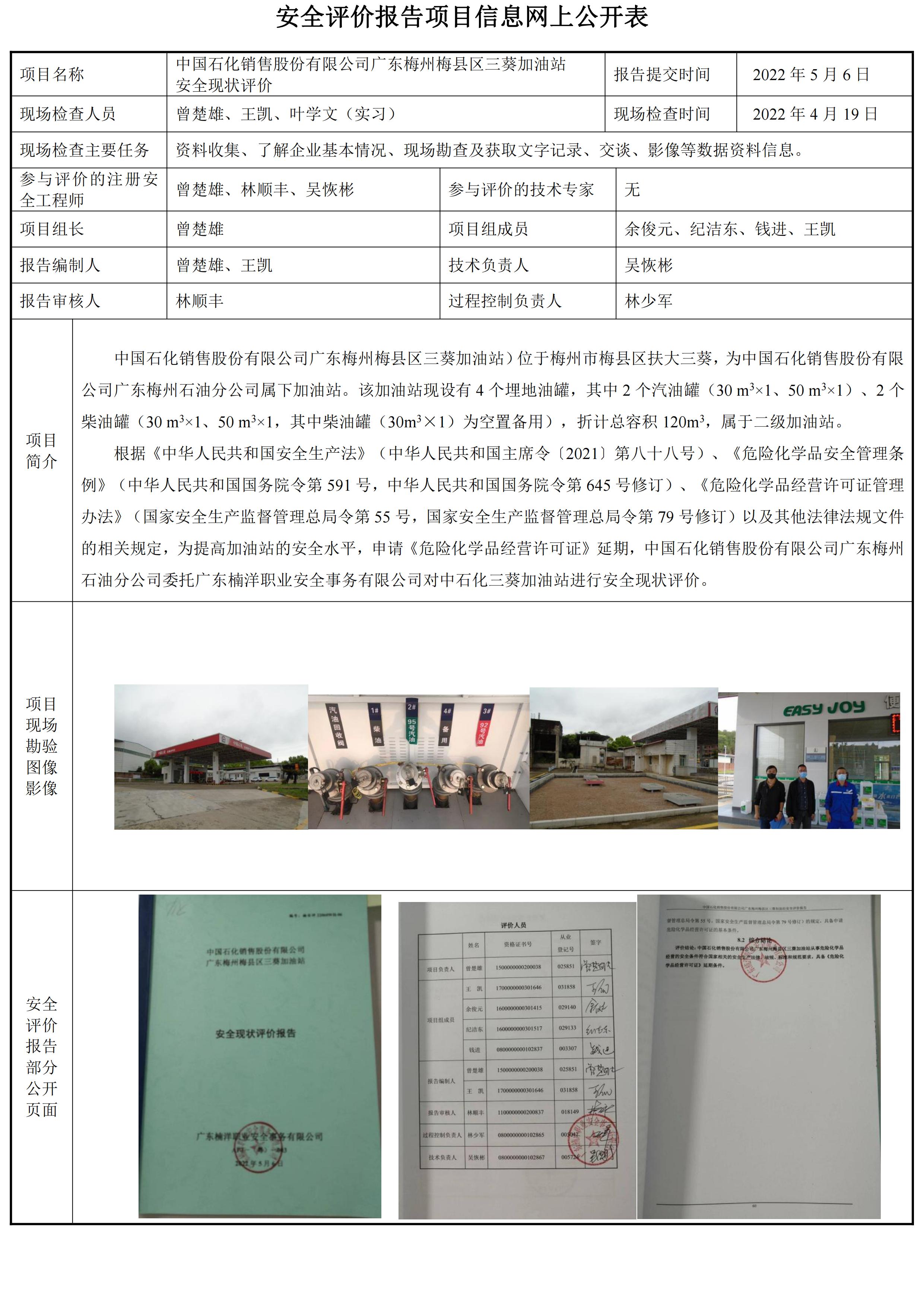 中国石化销售股份有限公司广东梅州梅县区三葵加油站安全现状评价报告