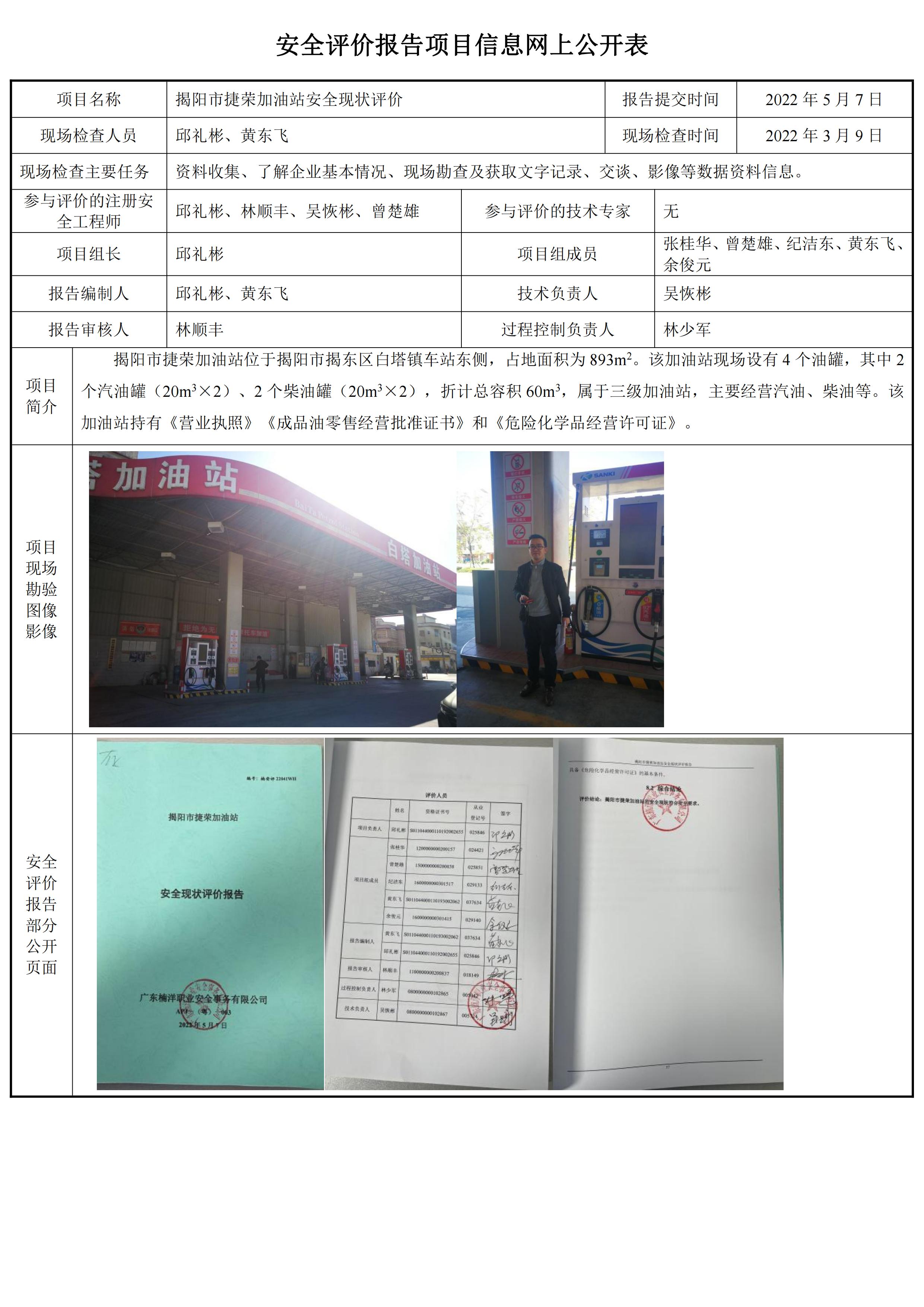 揭阳市捷荣加油站安全现状评价报告