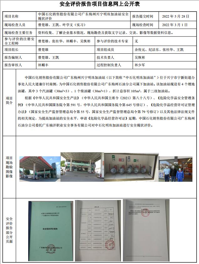 中国石化销售股份有限公司广东梅州兴宁明珠加油站安全现状评价报告
