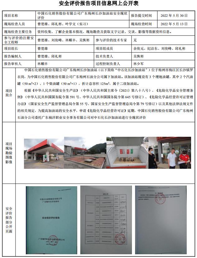 中国石化销售股份有限公司广东梅州长沙加油站安全现状评价报告
