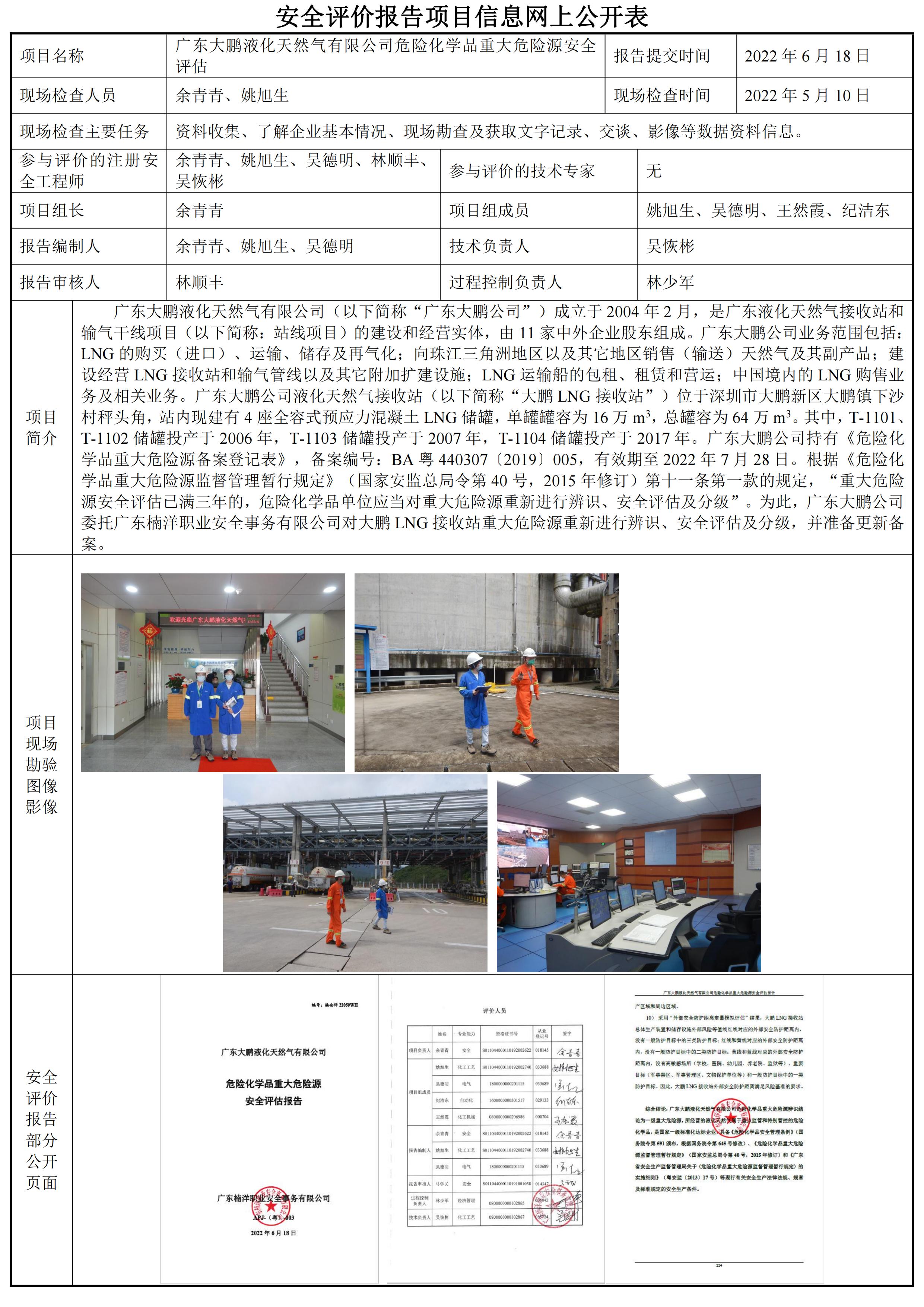 广东大鹏液化天然气有限公司危险化学品重大危险源安全评估报告