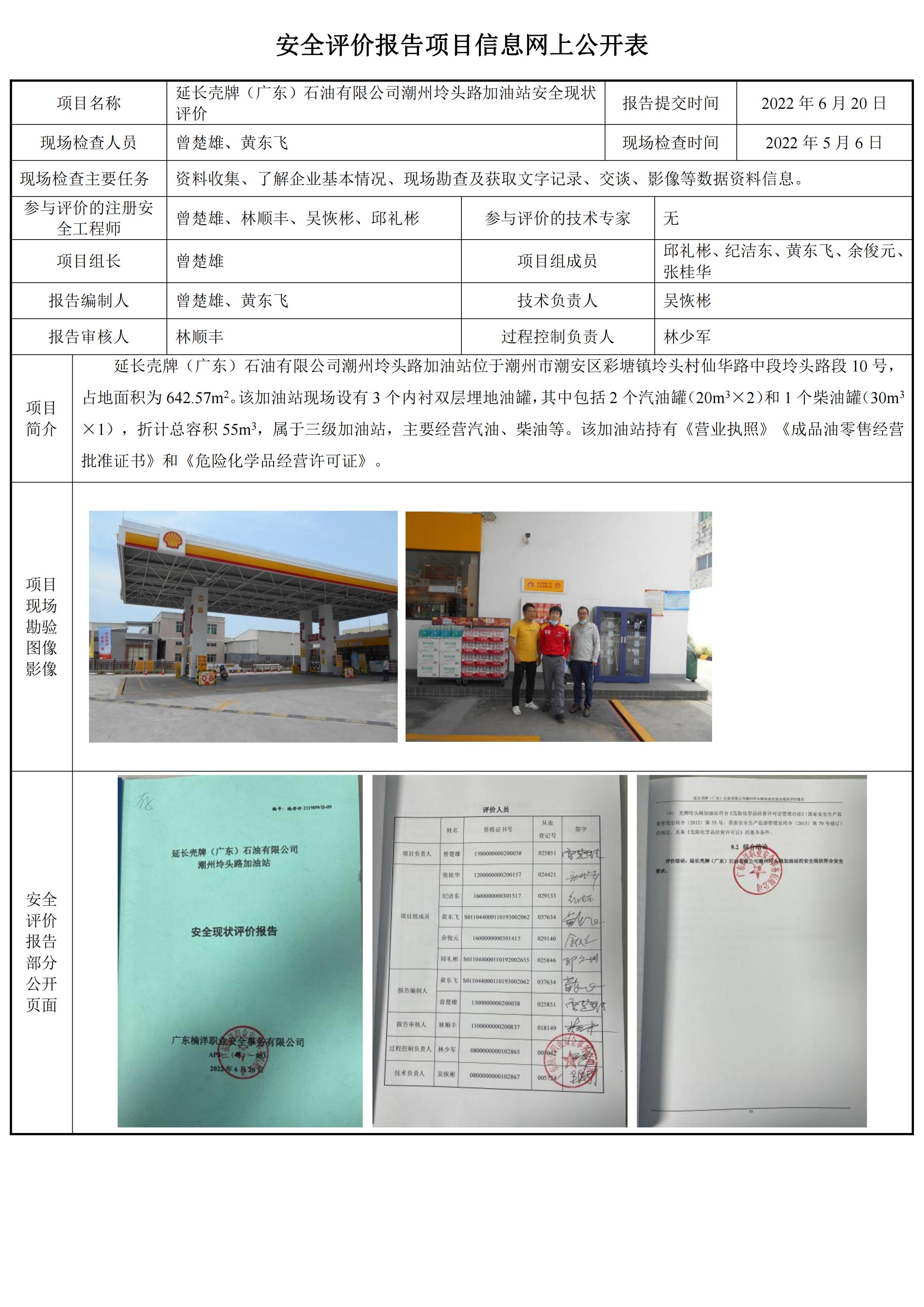 延长壳牌(广东)石油有限公司潮州坽头路加油站安全现状评价报告