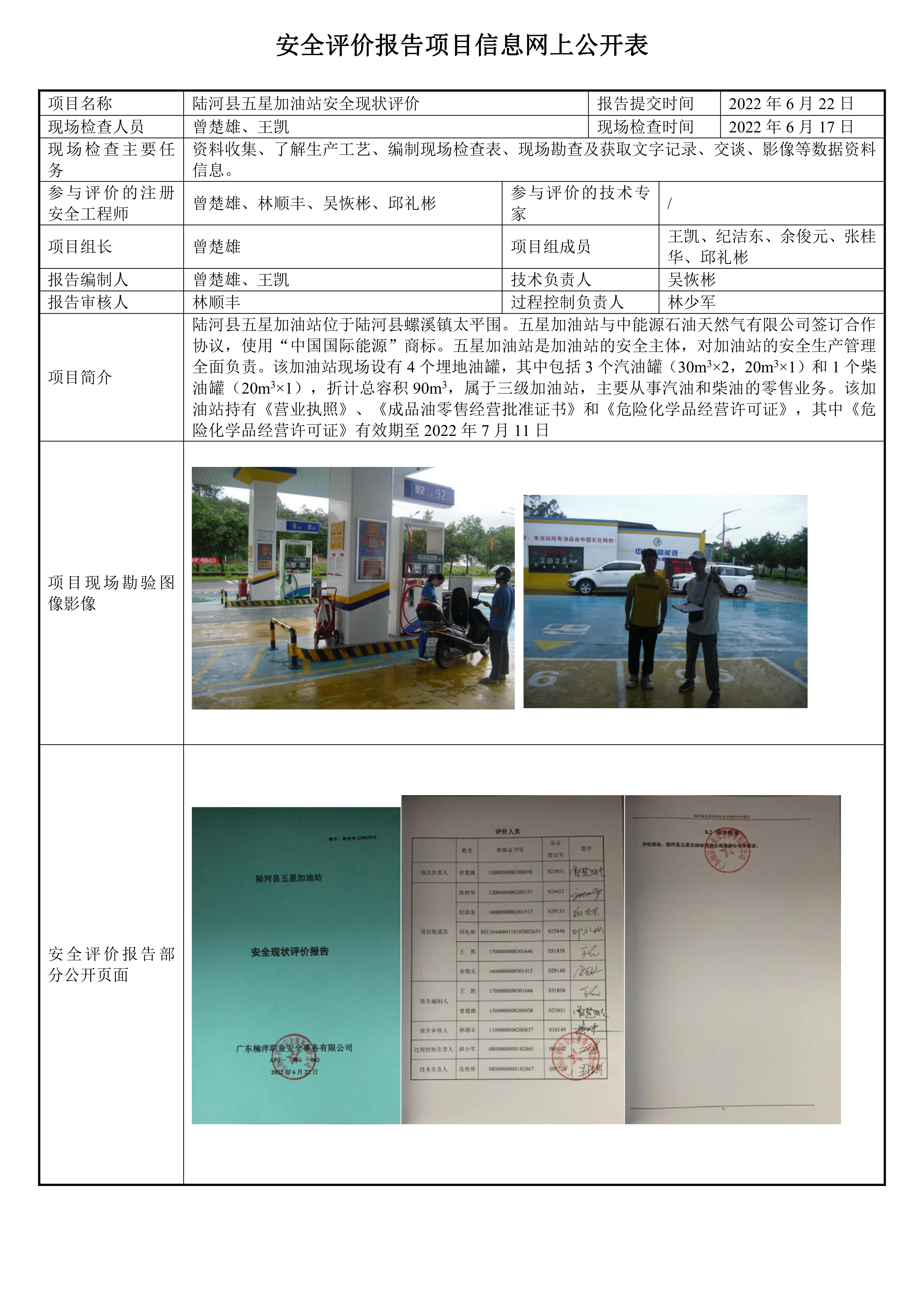 中国石化销售股份有限公司广东梅州梅县区龙塘加油站安全现状评价报告