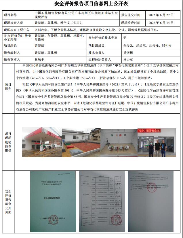 中国石化销售股份有限公司广东梅州五华横陂加油站安全现状评价报告