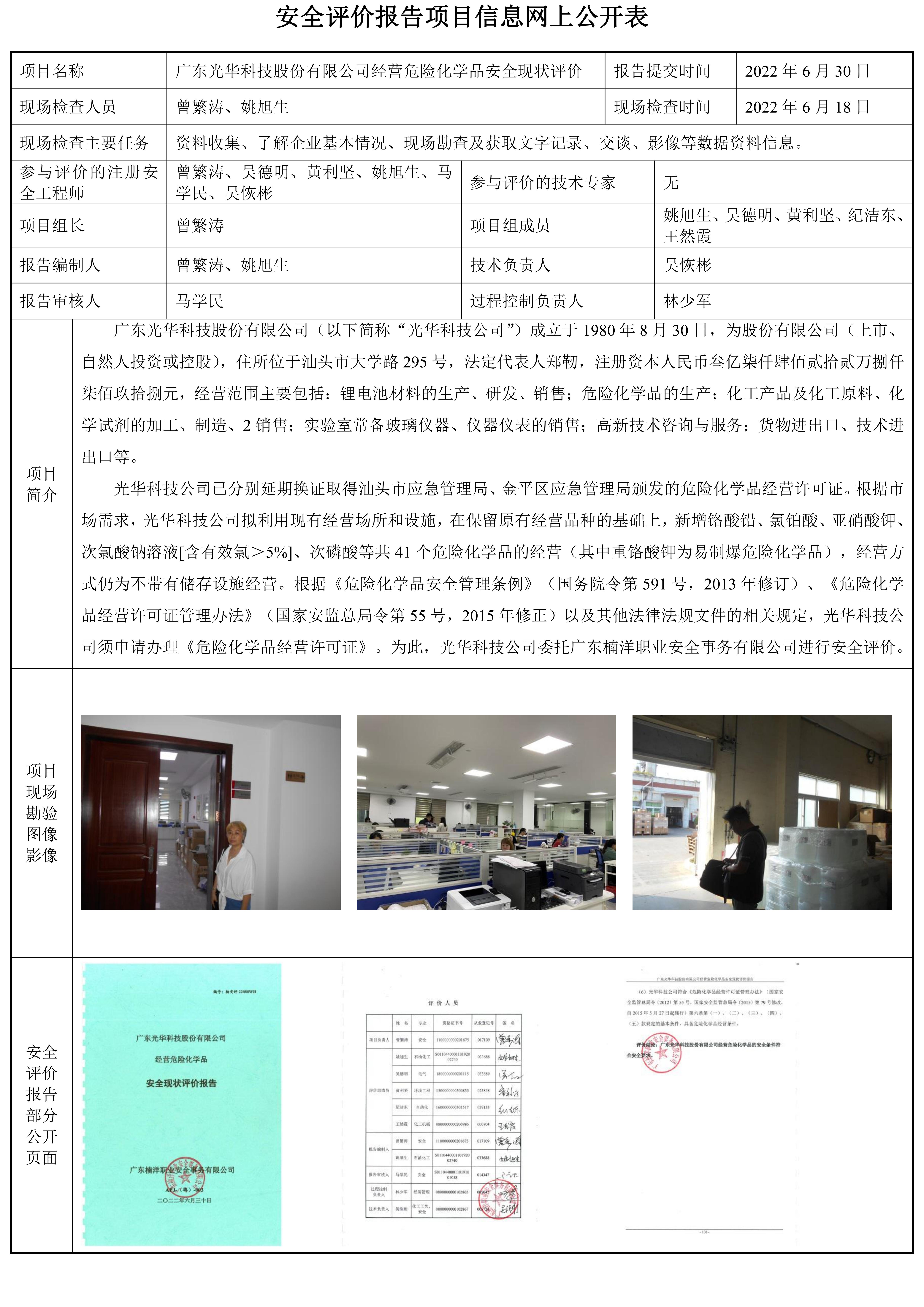 广东光华科技股份有限公司经营危险化学品安全现状评价报告