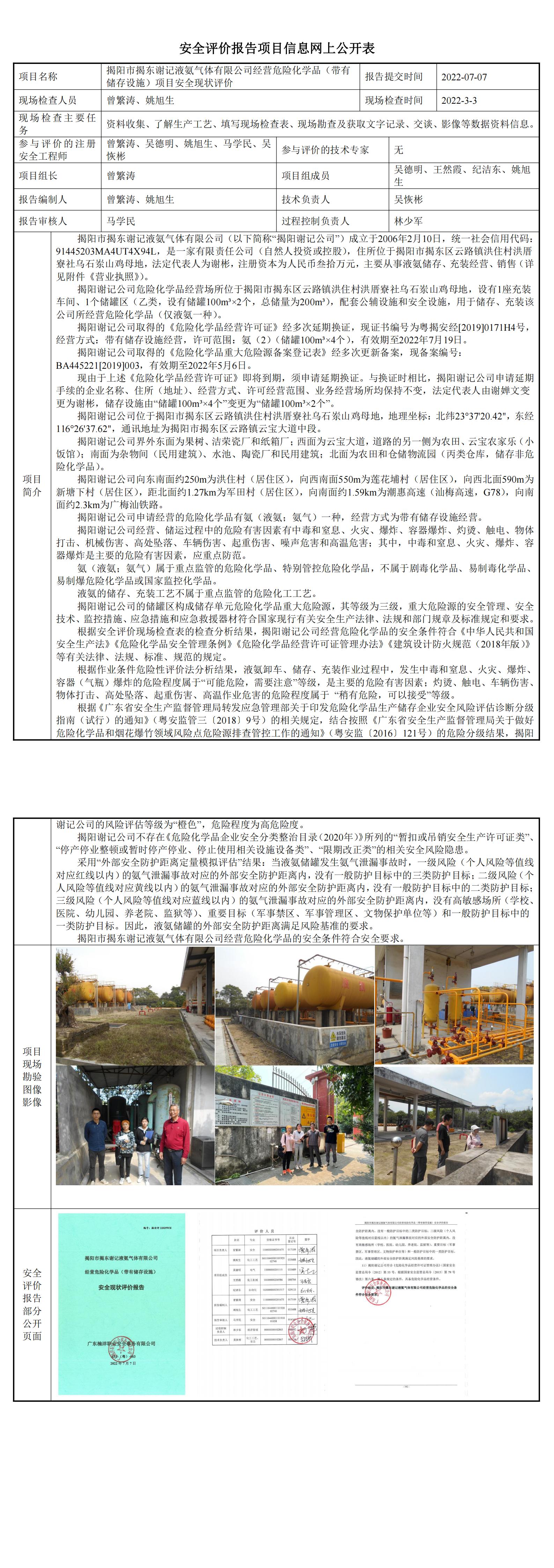 揭阳市揭东谢记液氨气体有限公司经营危险化学品(带有储存设施)安全现状评价报告