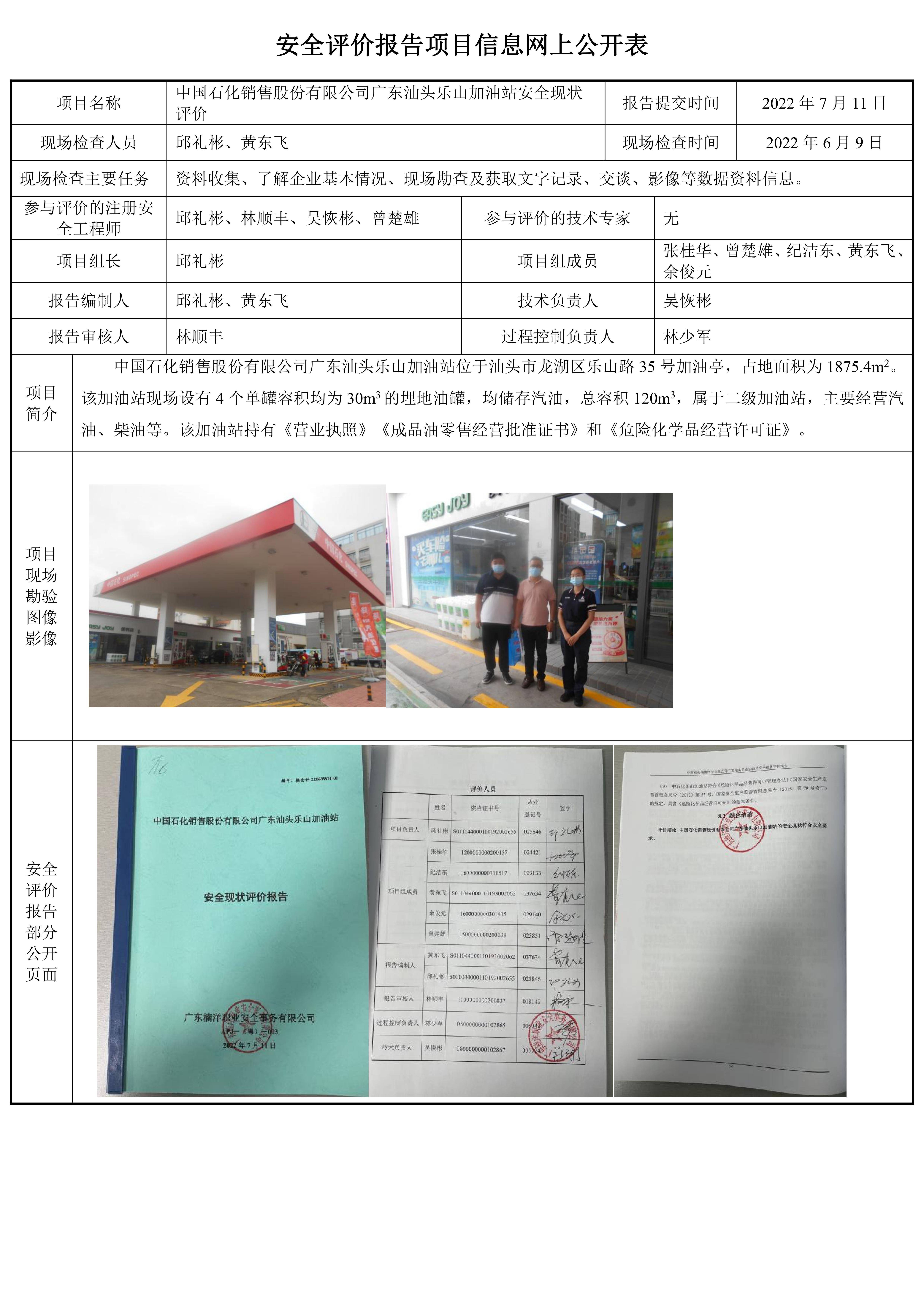 中国石化销售股份有限公司广东汕头乐山加油站安全现状评价报告