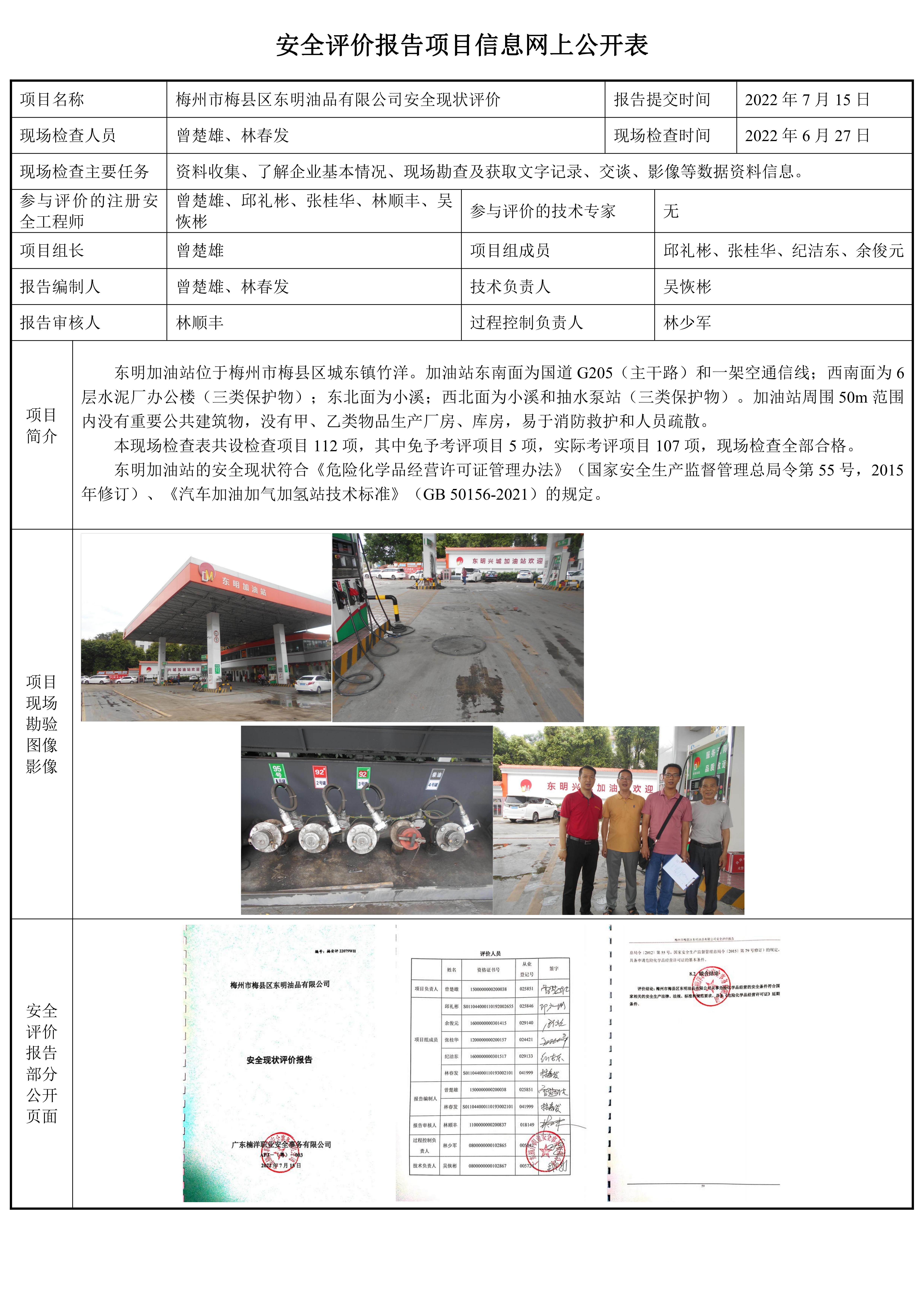 梅州市梅县区东明油品有限公司安全现状评价报告