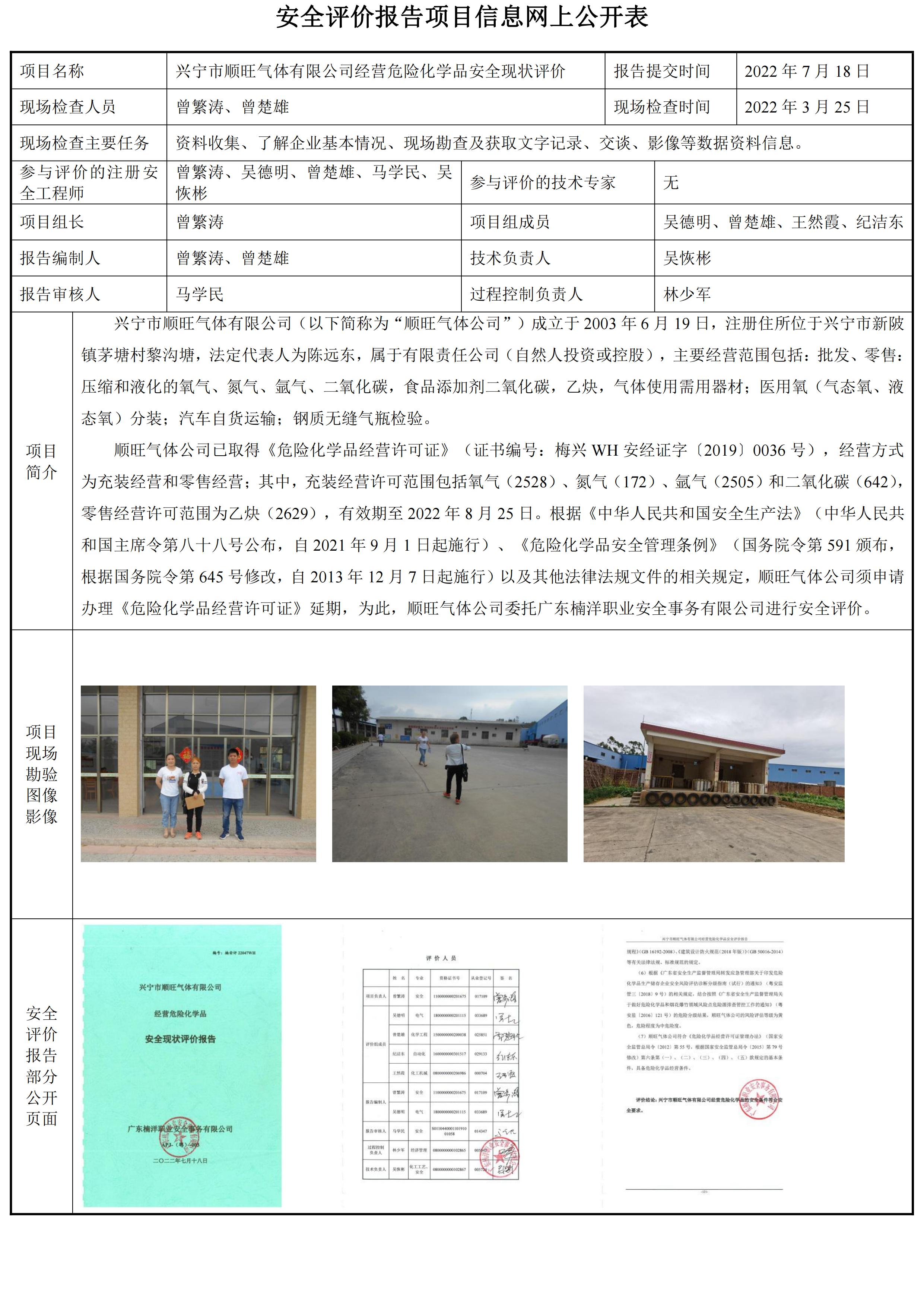 兴宁市顺旺气体有限公司经营危险化学品安全现状评价报告