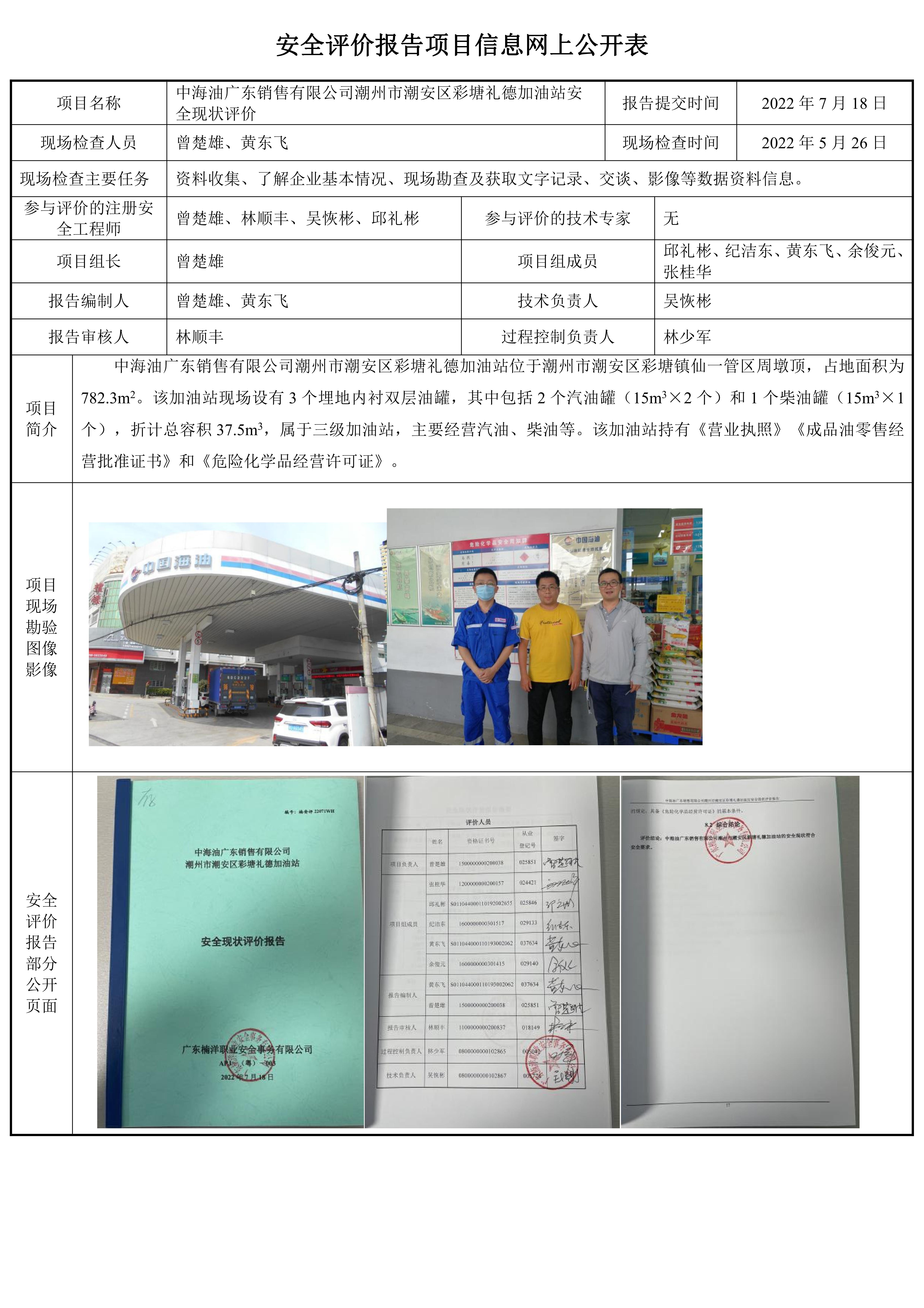 中海油广东销售有限公司潮州市潮安区彩塘礼德加油站安全现状评价报告