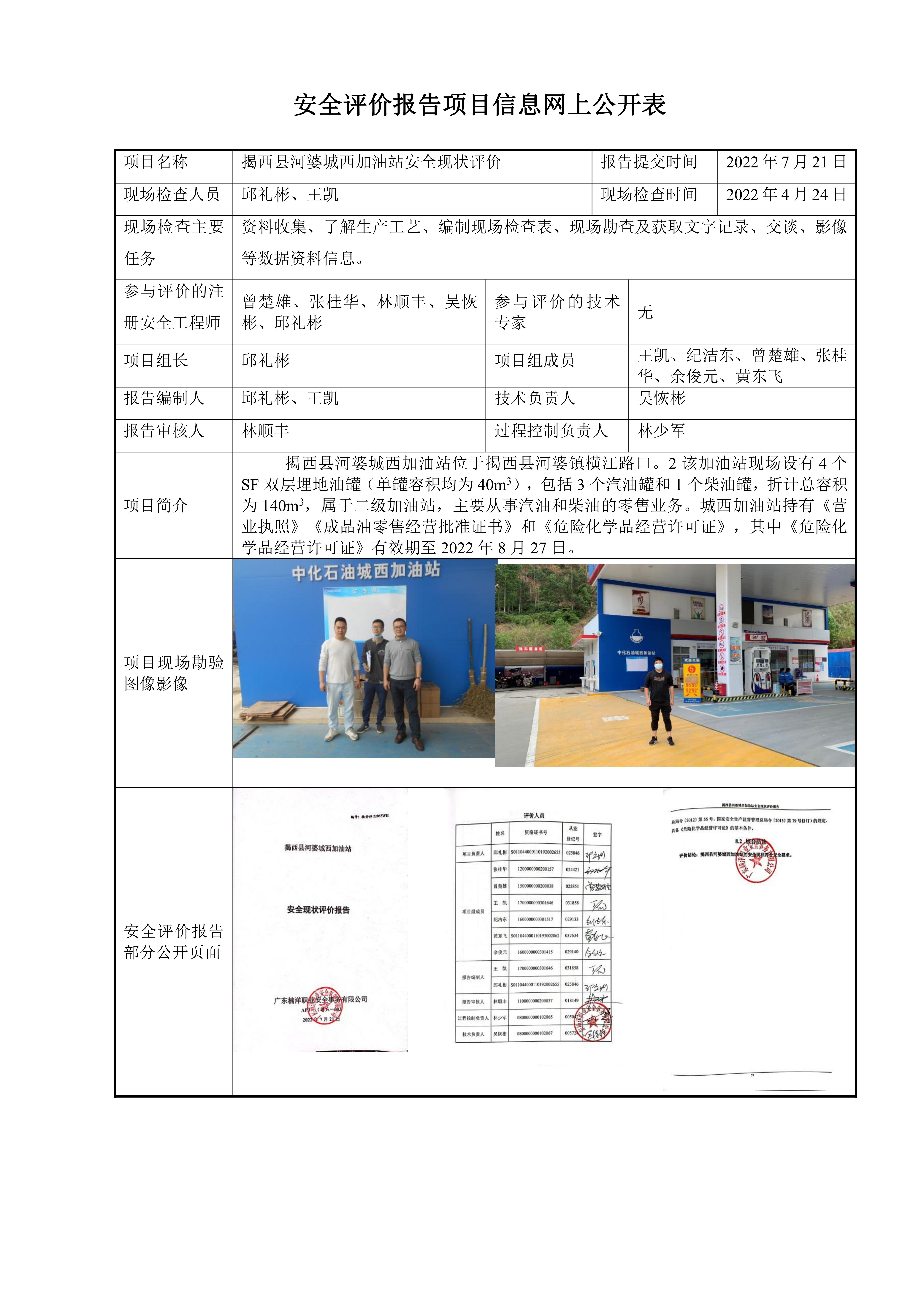 中海油广东销售有限公司潮州市潮安区彩塘礼德加油站安全现状评价报告
